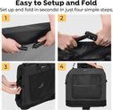 - 360° Breathable Vision Mesh Windows - 5-sided mesh windows of portable dog crate are highly ventilated, and 4 roll-up entrance doors (top,front,left,right side) allow your dog to enter and exit freely, as well visibility for anxious pets and owners.