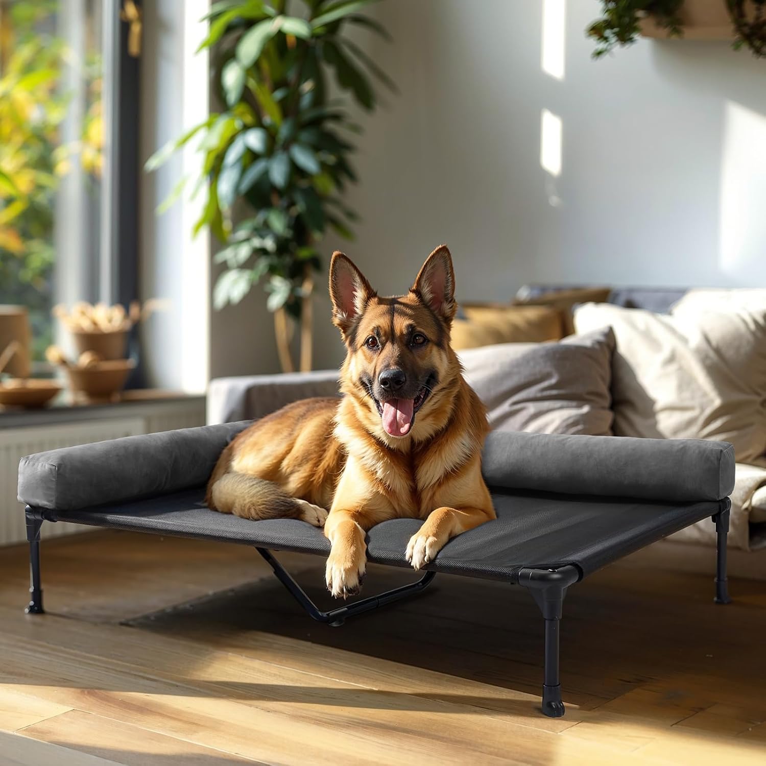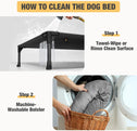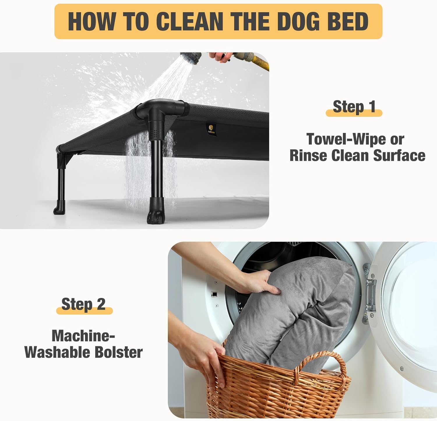 - Easy to Clean: The mesh cover on the cooling dog bed can be removed. Pet hair and dust can be wiped with a wet towel or rinsed with water. In addition, The removable L-shaped bolster of the raised dog bed is machine washable, which is convenient and quick