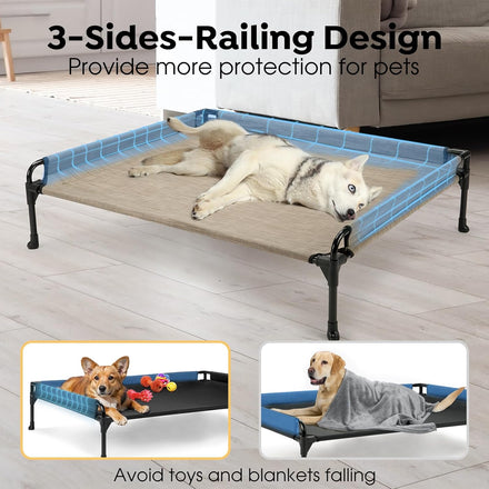 - Three Sided Railing Design: Our innovative elevated dog bed features a sturdy three-sided fence design for added safety and stability, The raised edges prevent toys and blankets from falling, offering a cozy, elevated retreat for your pet. Perfect for peace of mind and comfort.