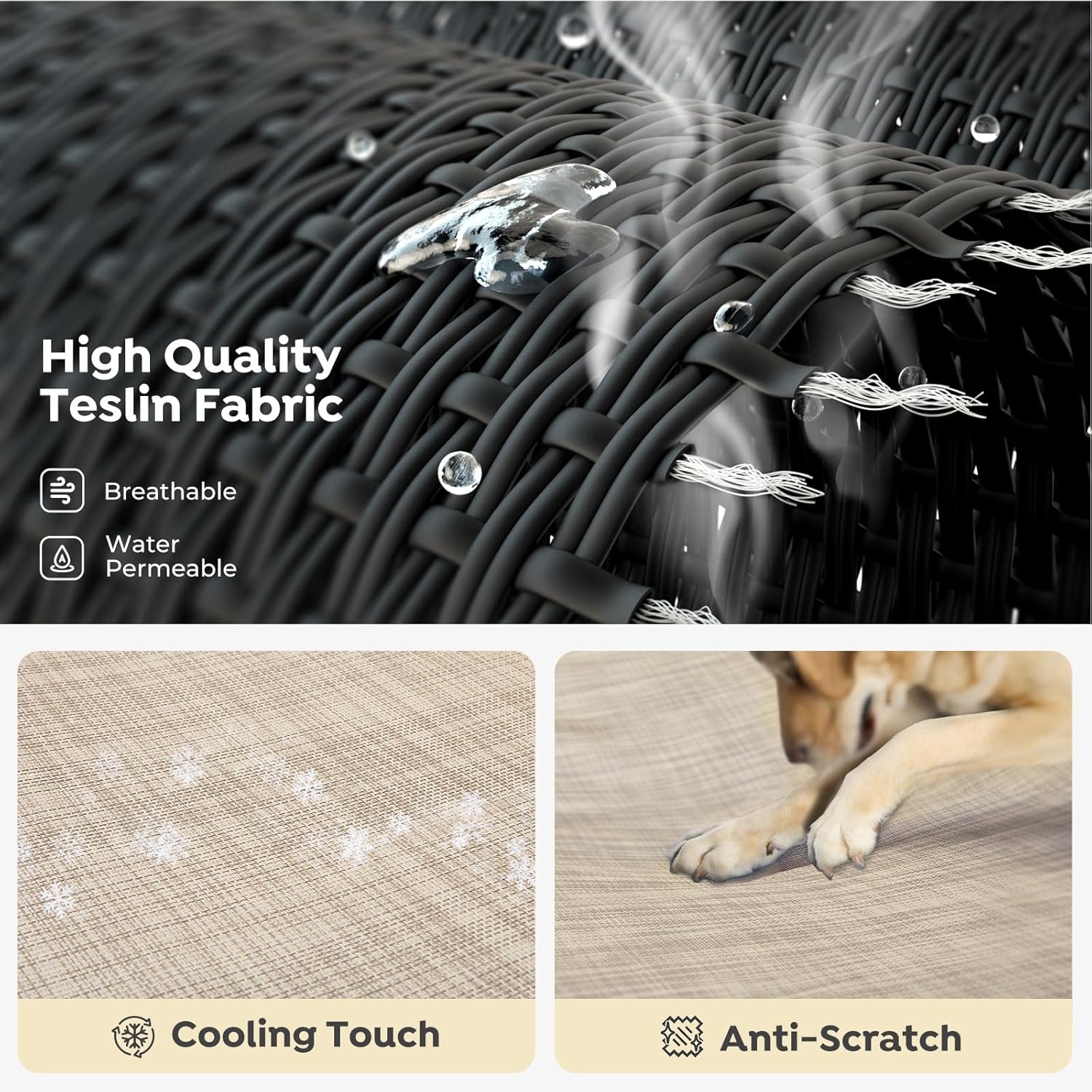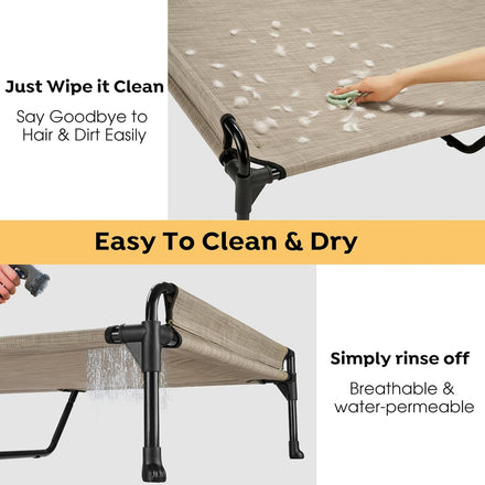 - Easy to Clean: Not only is the Teslin mesh durable, the elevated dog bed also easy to wipe down, ensuring a clean resting environment for your dogs. The mesh center promotes air circulation, helping to keep the outdoor dog bed fresh and reduce the build-up of odors. When a deeper clean is needed, the mesh can be removed and washed.