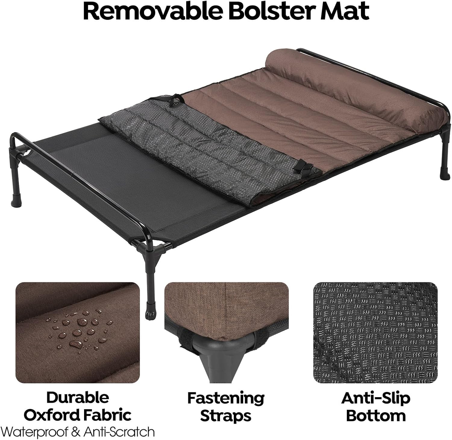 - Removable Dog Bed Pad: This dog bed pad provides neck support for your pup. It features a waterproof and scratch-resistant surface, along with a non-slip bottom and secure fastenings to ensure it fits snugly on elevated dog bed