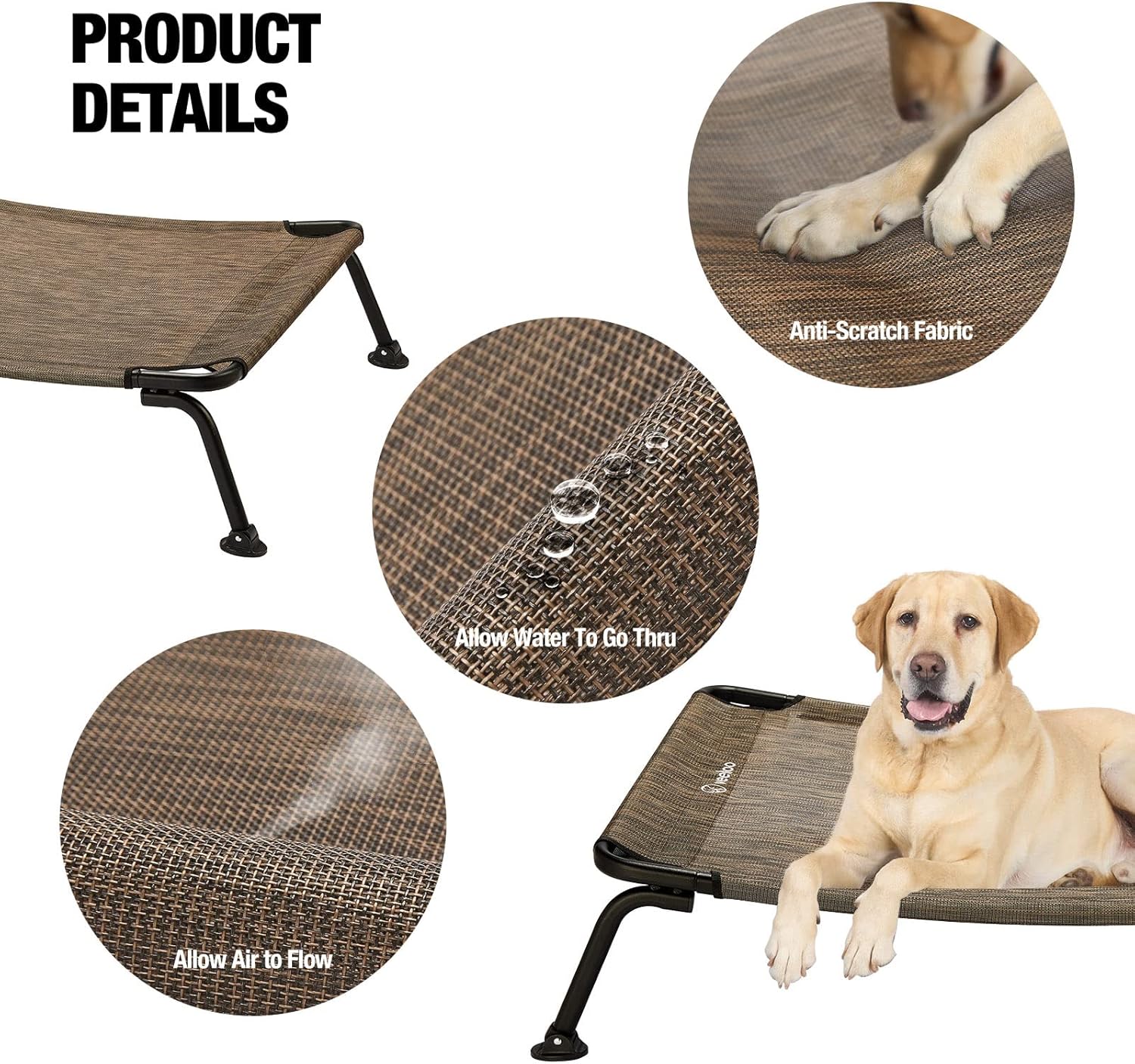 - Off Ground Design : With a height of 8" above the ground, this lifted dog bed made of Textilene mesh fabric is stable and breathable, suitable for both indoor and outdoor use. Sleeping on a dog platform bed is more comfortable, cleaner, drier and healthier than sleeping on the floor.