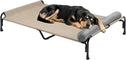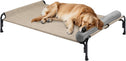 - Large Elevated Dog Bed. Composed of powder-coated steel, textilene mesh and dog-paw non-slip rubber feet. Dog bed size: 43"L x 30"W x 10.6"H (110x76x27 cm), fits up to 110 lbs(50kg).