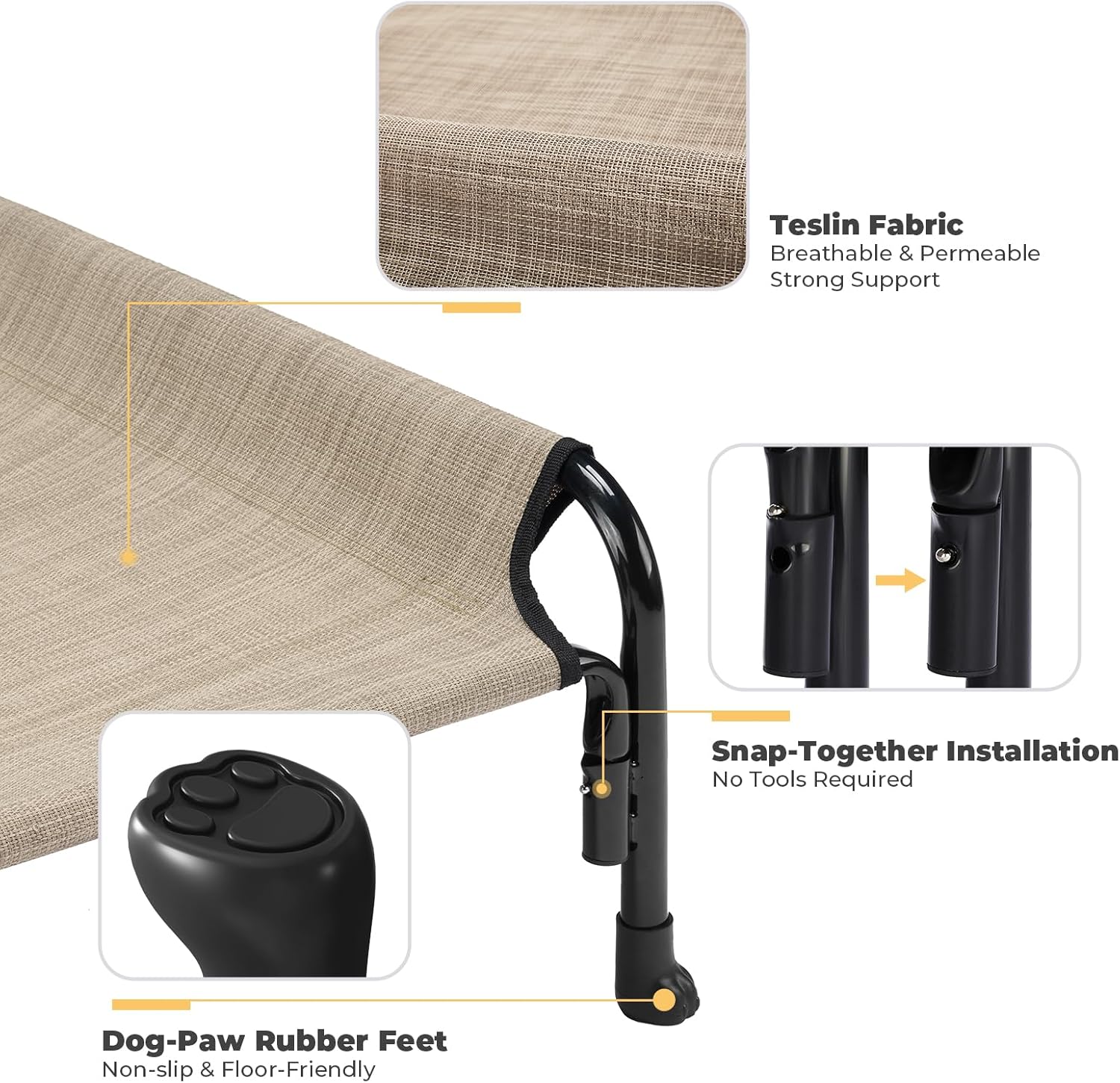 - Stay Hygienic and Cool Ever: Teslin breathable mesh helps keep your dog cool, especially during the hot summer months. The elevated dog cot design allows air circulation and prevents the accumulation of moisture, providing a dry sleeping environment.