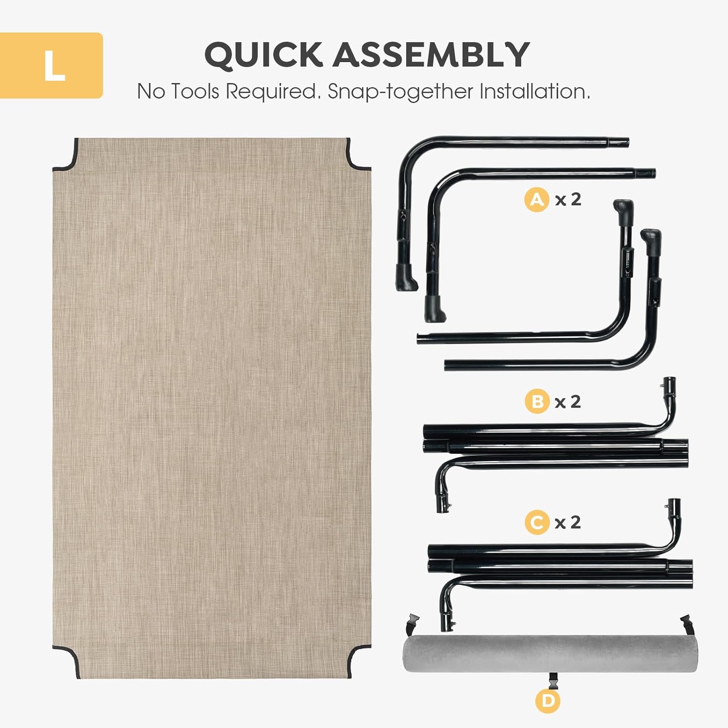- Snap-Together Installation. Easy to Assemble. No screws and wrenches needed. Best idea as dog hammock bed and training platform. Lightweight and portable. Perfect for indoor, outdoor, picnic, camping, training… Quality sleep on the go!