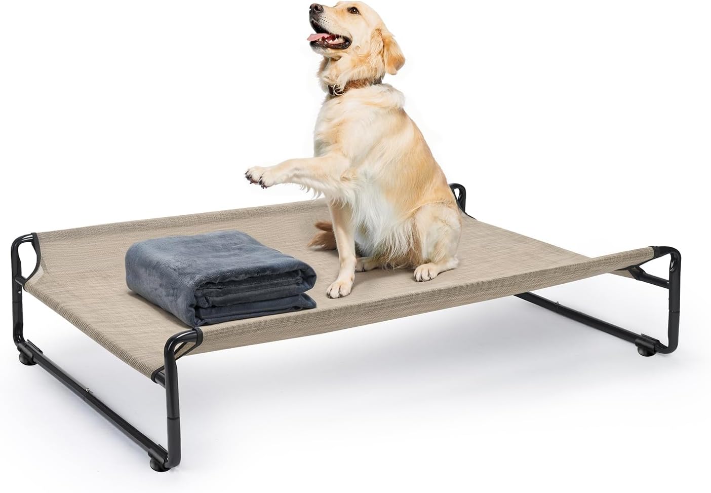 - Available in all seasons. Crafted of textilene mesh fabric, the dog cot allows air to flow, keeping your pets cool in summer. Use it with a blanket or dog mattress in winter to make your pet's sleeping environment more comfortable, warm and clean.