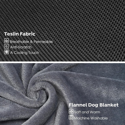 - Veehoo Store Unique Fence Design. The slope headrest provides support for your dog while sleeping. Also prevents pets, dog mattresses or blankets from falling. Flannel dog blanket included.