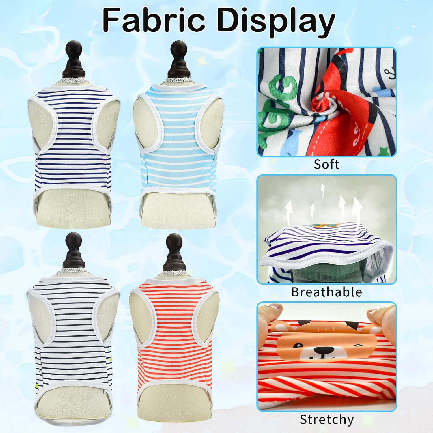 With Stripe and cartoon patterns, the cute pet vests are suitable for girl and boy dogs and cats.