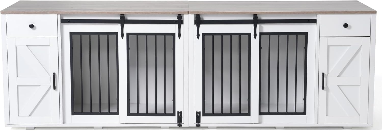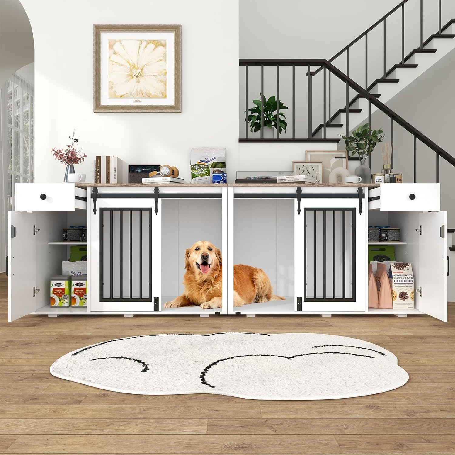 - Ample Storage Space: This wooden dog crate furniture features a spacious tabletop for displaying plants, magazines, photo frames, and other decorative items. 2 drawers and 2 cabinets with adjustable shelves provide ample storage space for pet supplies like dog toys, leashes, food, helping to keep your home tidy and organized.
