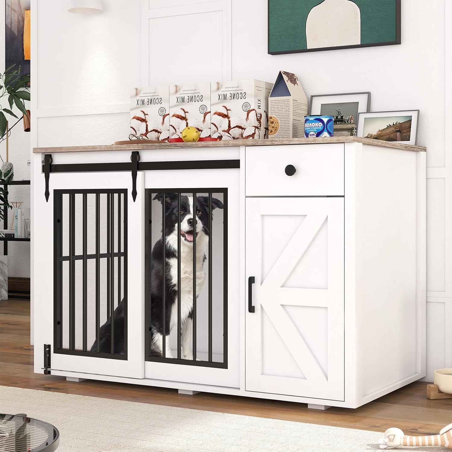 Featuring a classic barn door design, this farmhouse style dog crate adds charm and beauty to your home decor.