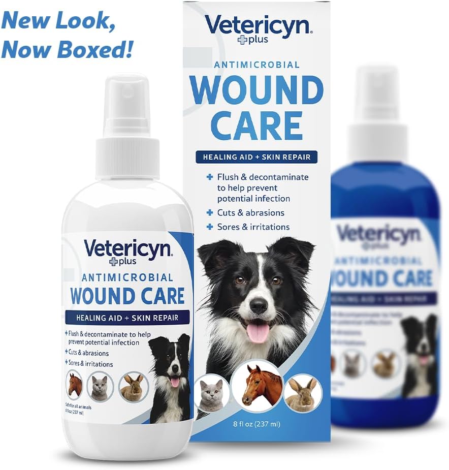Vetericyn Plus Dog Wound Care Spray | Healing Aid and Skin Repair, Clean Wounds, Relieve Itchy Skin, and Prevent Infection, Safe for All Animals. 8 Ounces