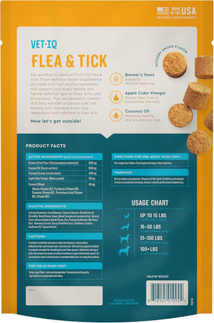 - Veterinarian Trusted: VetIQ supplements are trusted by veterinarians, ensuring high standards of quality, safety, and effectiveness; You can feel confident adding these Flea & Tick soft chews to your dog’s daily wellness routine