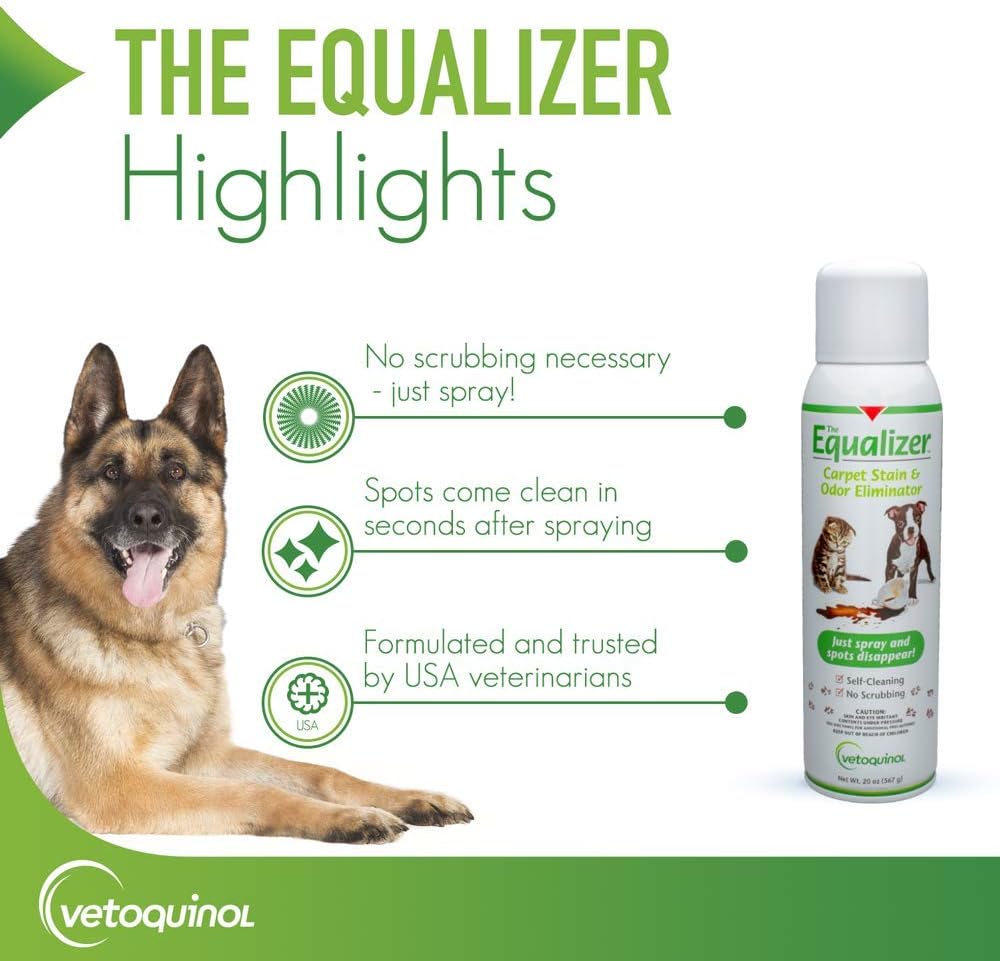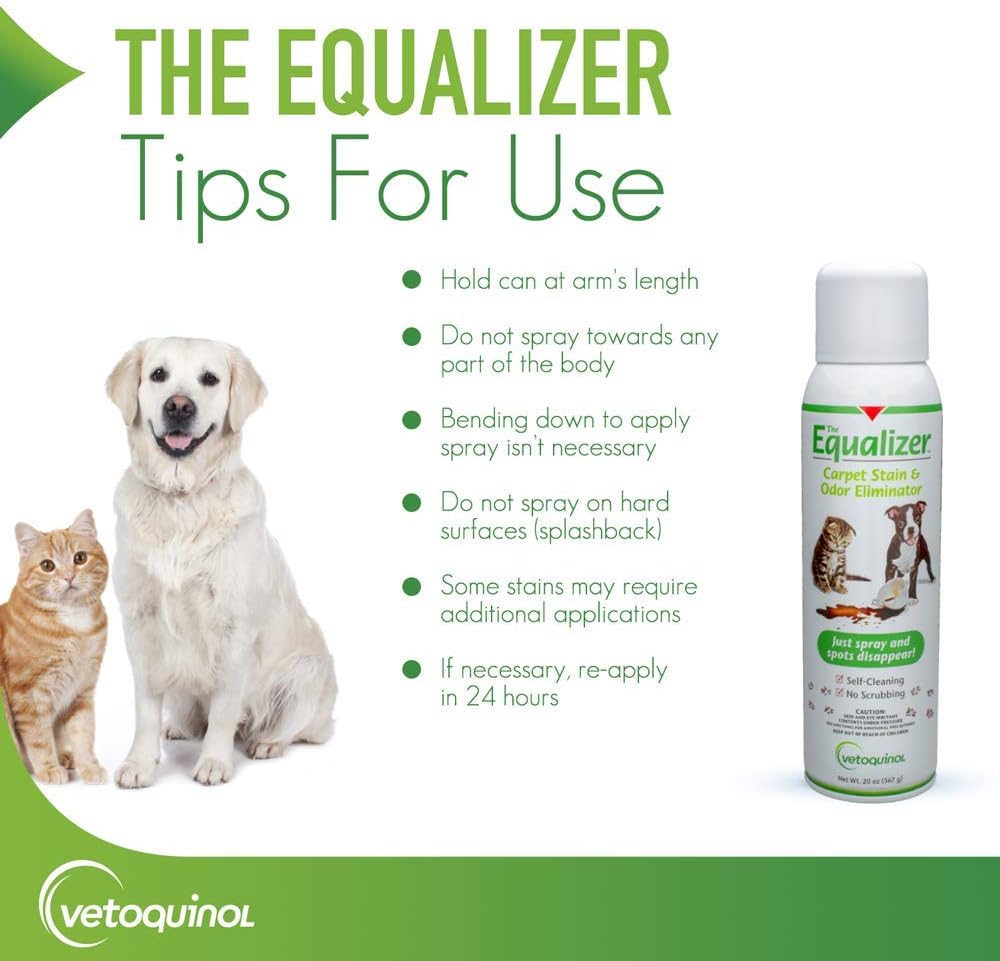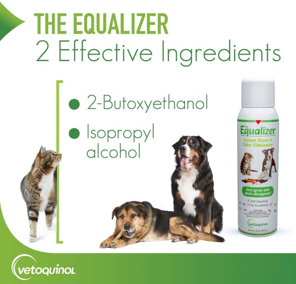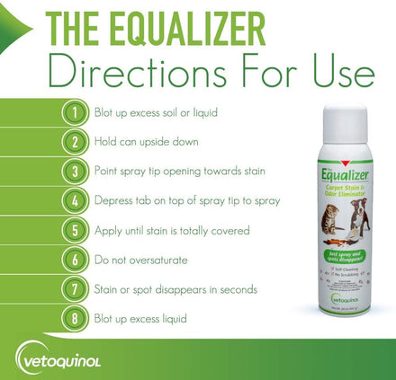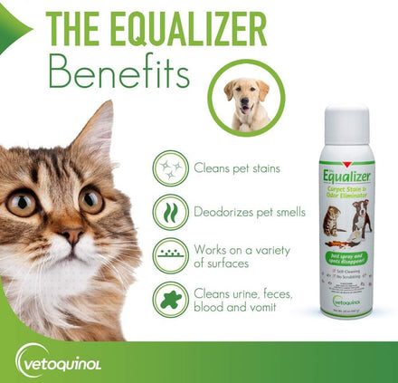 - Equalizer is fomulated to remove pet odors from the toughest pet disasters and discourages resoiling