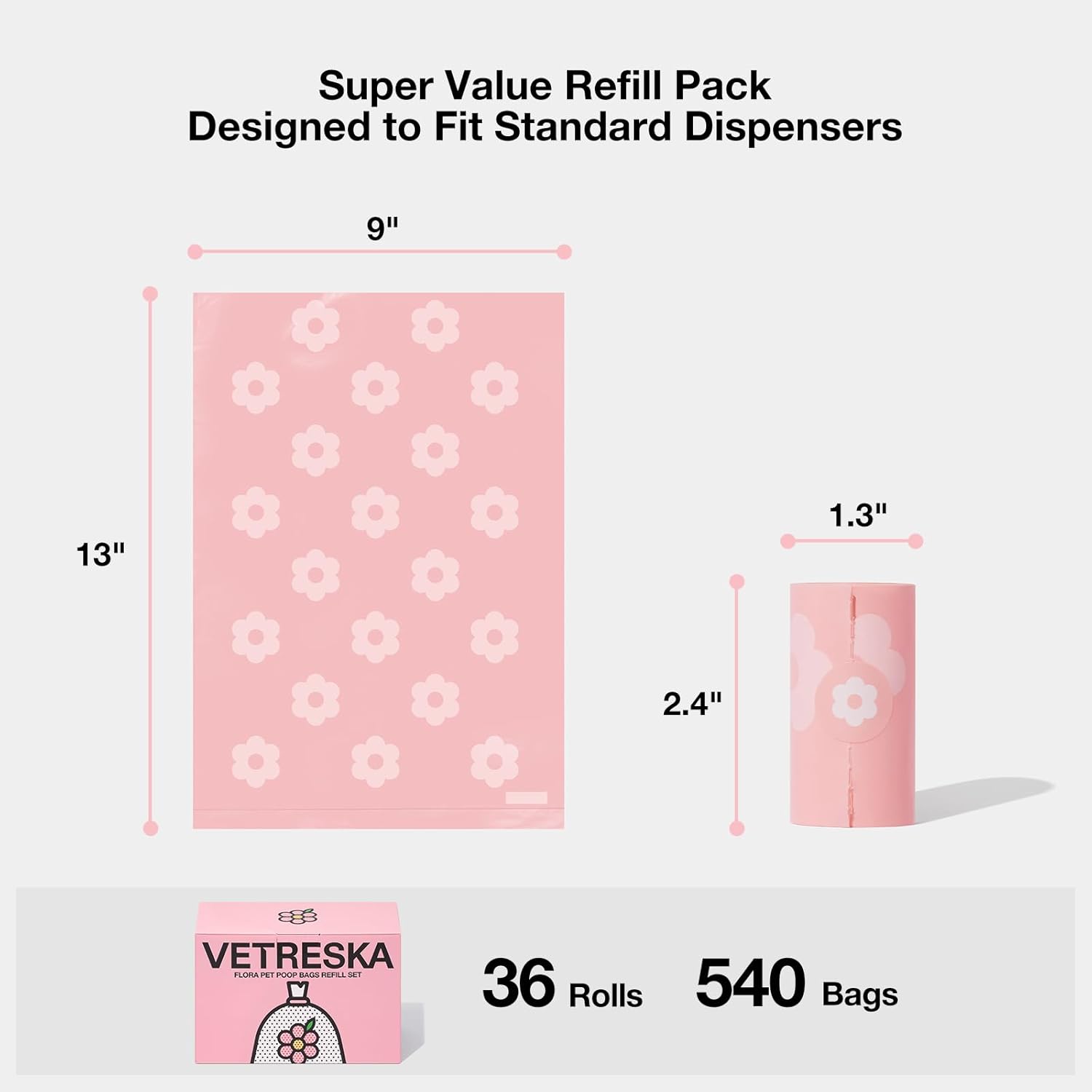 - VALUE PACKAGE: There will be 36 rolls in a box, 15 bags in each roll, 540 bags in total, which covers 9 months of usage ( 2 bags per day). Each bag measures 9 * 13 inches