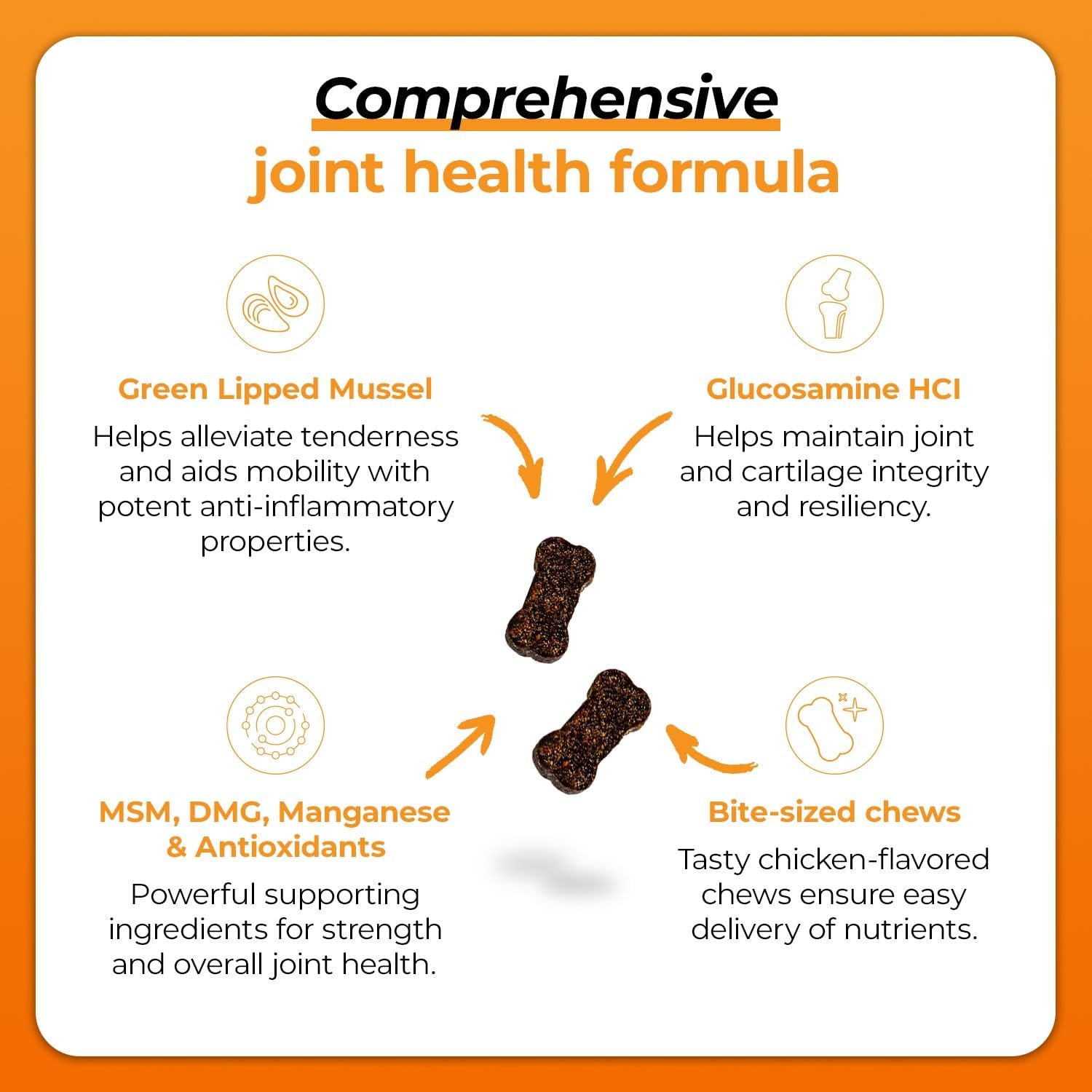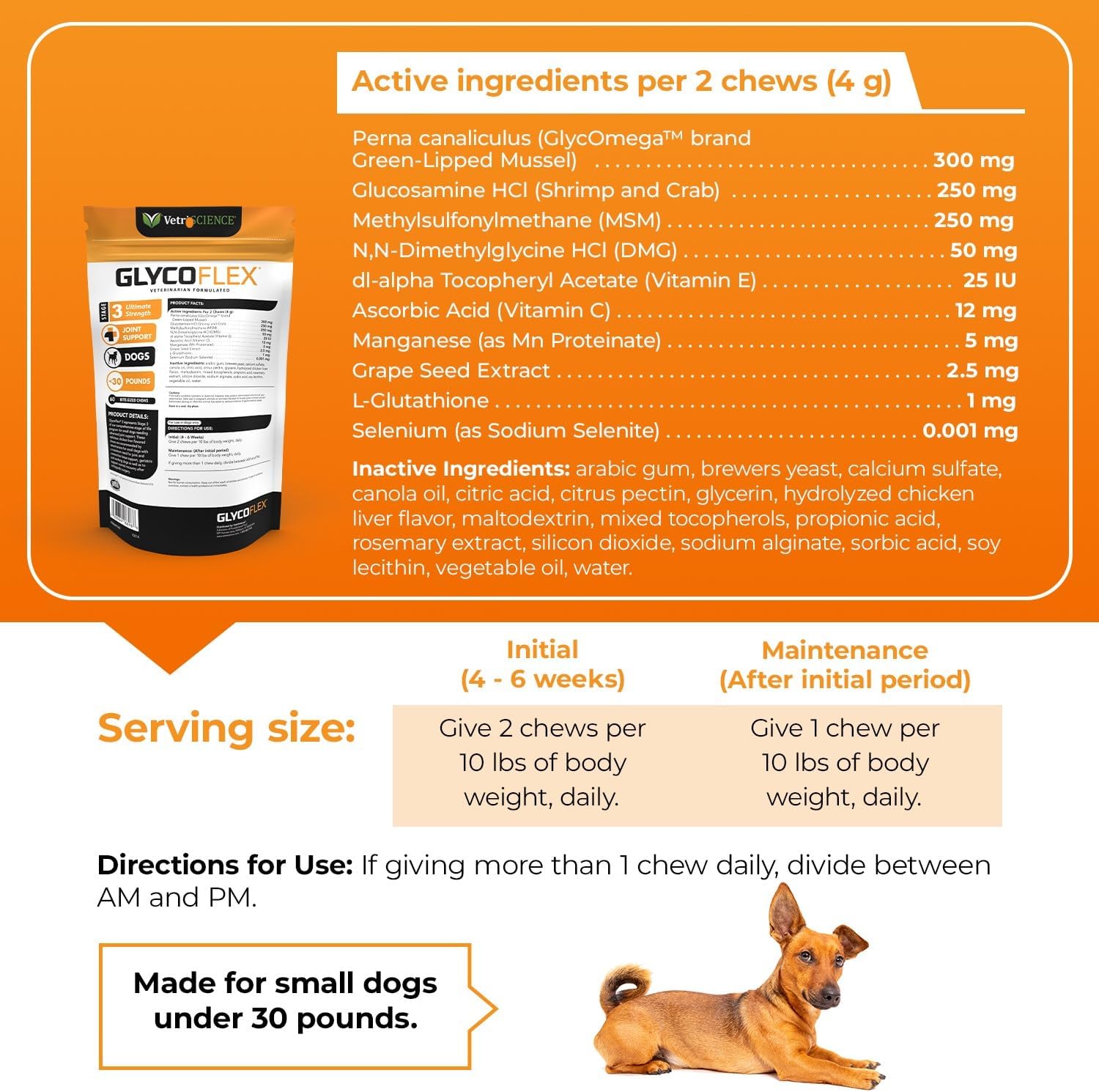 - Maximum strength joint health formula: Our GlycoFlex 3 canine formula combines 10 active ingredients including green lipped mussel, glucosamine for dogs, MSM, DMG, and antioxidants to help improve joint integrity, strength, mobility and function