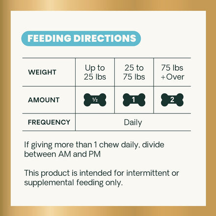 - Easy and Delicious: These chews are veggie -flavored to be gentle on sensitive stomachs and a great alternative to liquid or powder supplements. Dogs love the taste, making them easy to add to your daily routine