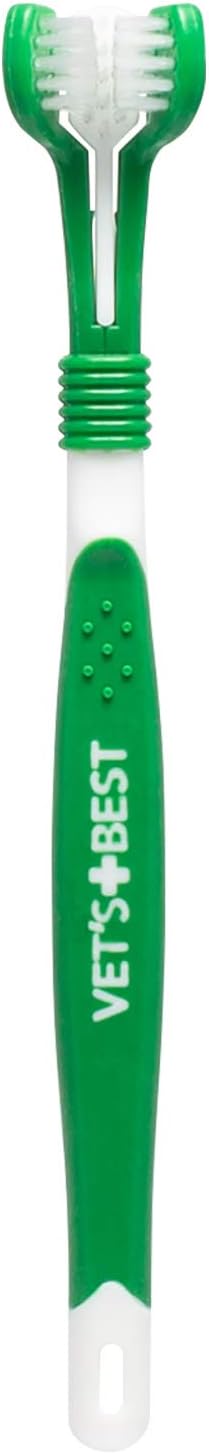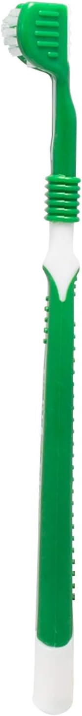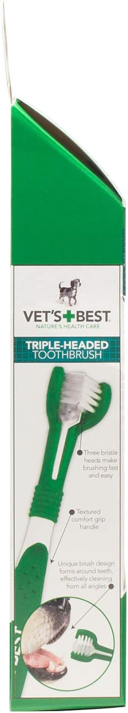 TRIPLE HEAD TOOTHBRUSH: Our dog dental cleaning kit features a triple-sided dog tooth brush that cleans all sides of your dog's teeth at once, making tooth brushing faster and more efficient; no more struggling to clean those hard to reach back teeth