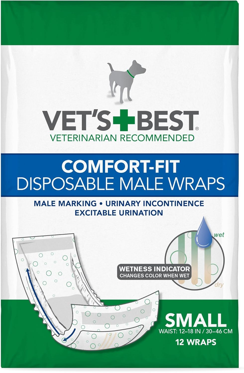 - CONFIDENCE - Each Vet’s Best Disposable Male Dog Wrap is manufactured with a wetness indicator. At a glance you will know when it is time to change the diaper.