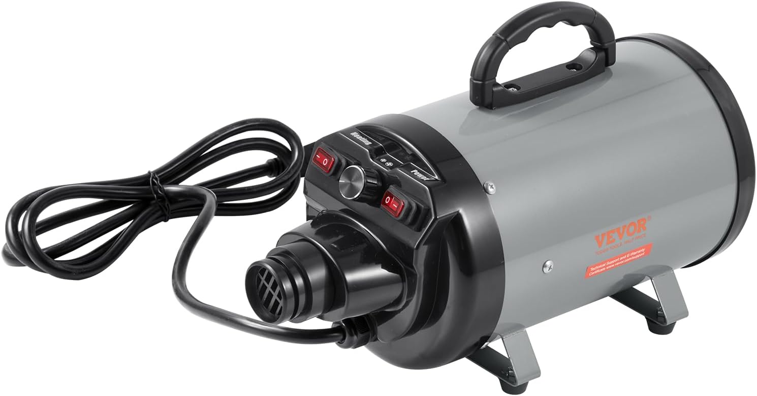 - Powerful Performance: Boasting a max 2800W/4.3 HP motor and a temperature range of 85°F to 135°F, this dog dryer significantly speeds up dog's drying process. The dual-temperature control settings facilitate deep drying of your pet's fur, preventing skin issues caused by dampness.