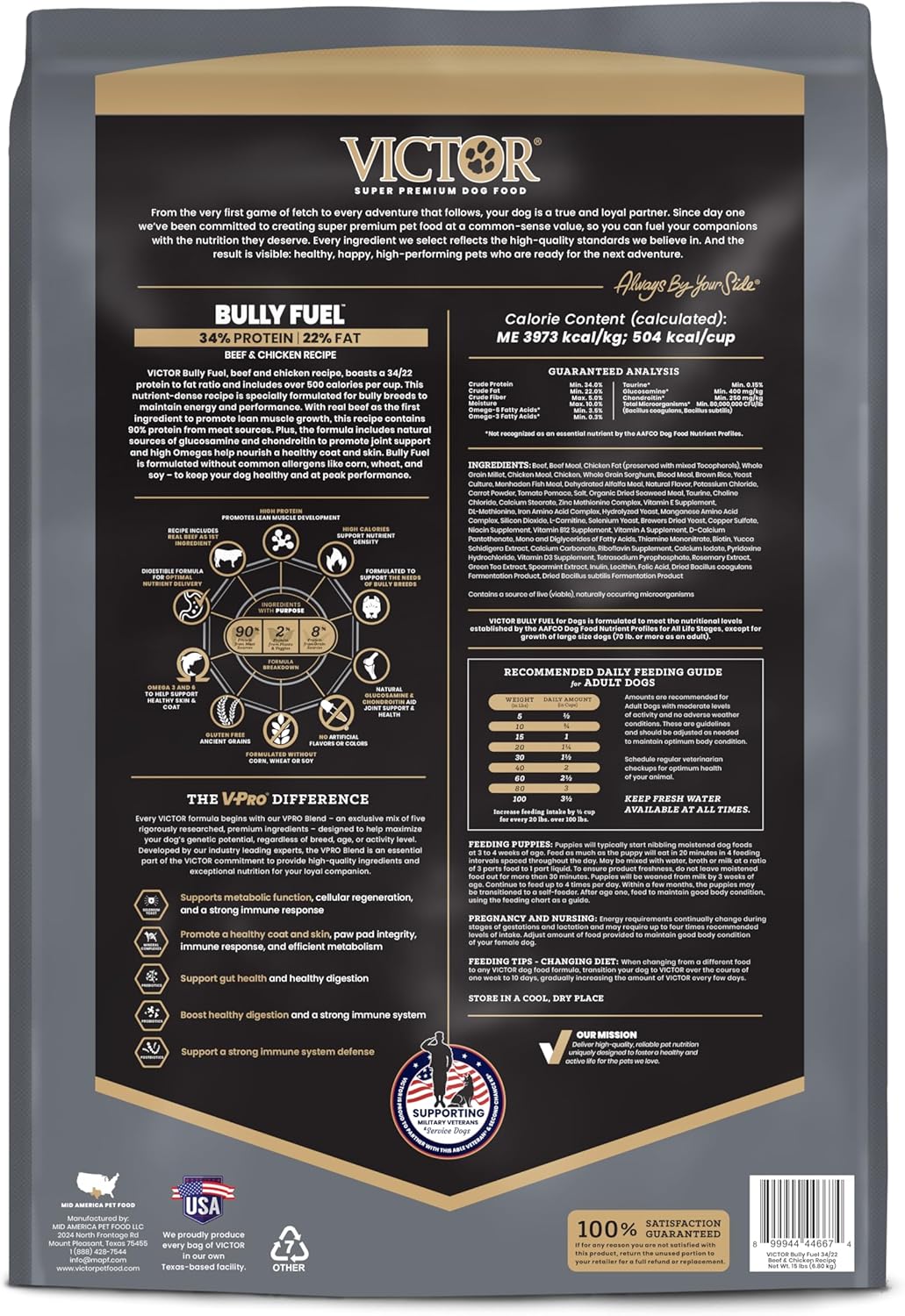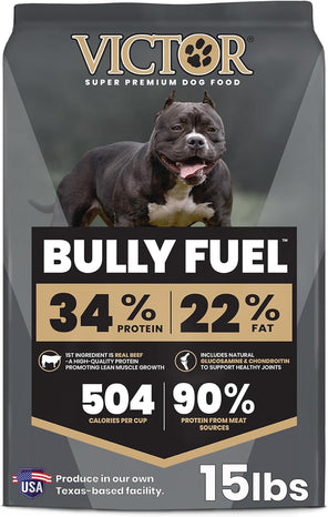 VICTOR Bully Fuel Dry Dog Food, 15 lb – Real Beef First Ingredient, High-Calorie Formula for Lean Muscle, Glucosamine & Chondroitin for Joint Health, Omega 3 & 6 for Skin & Coat