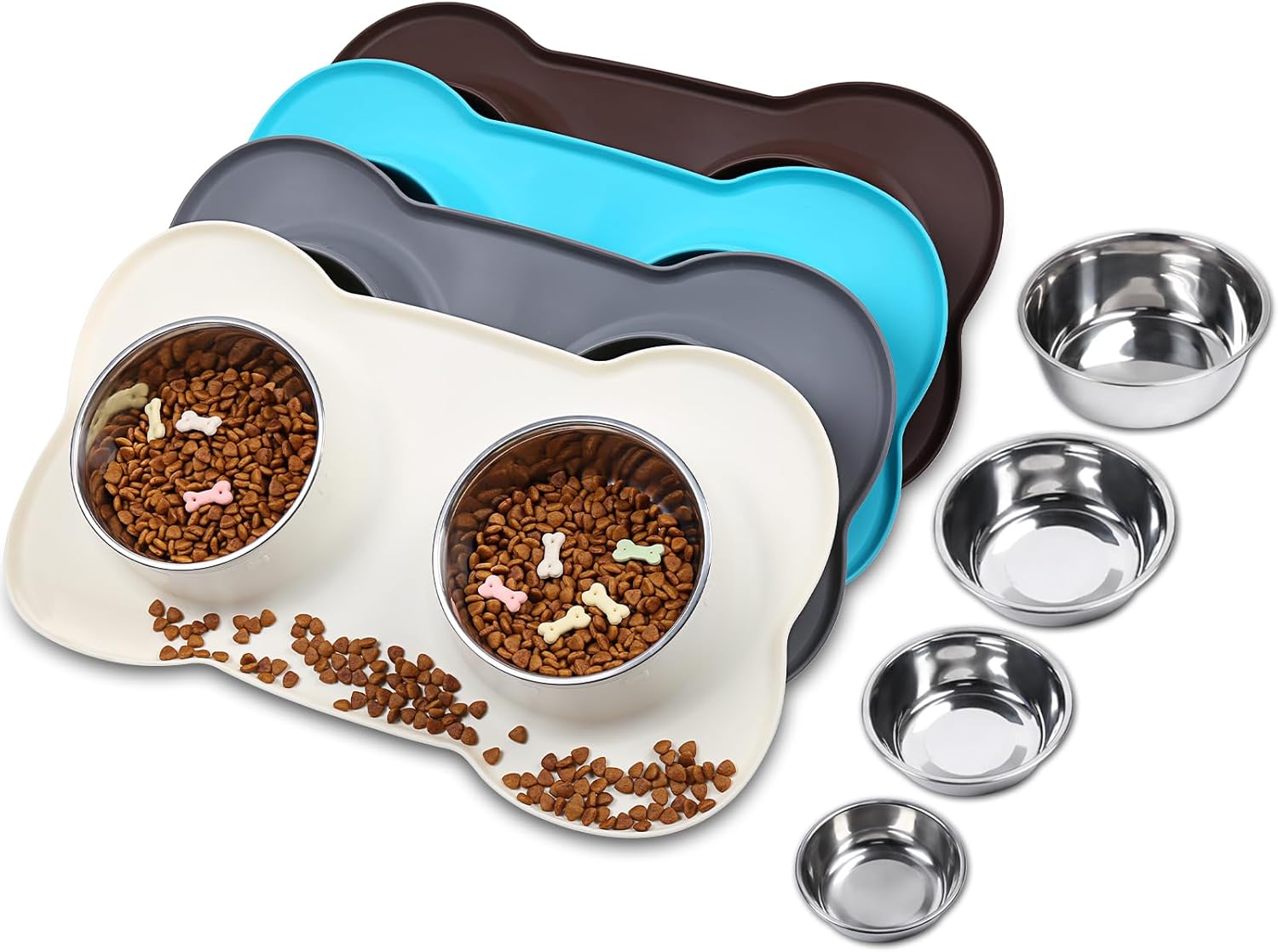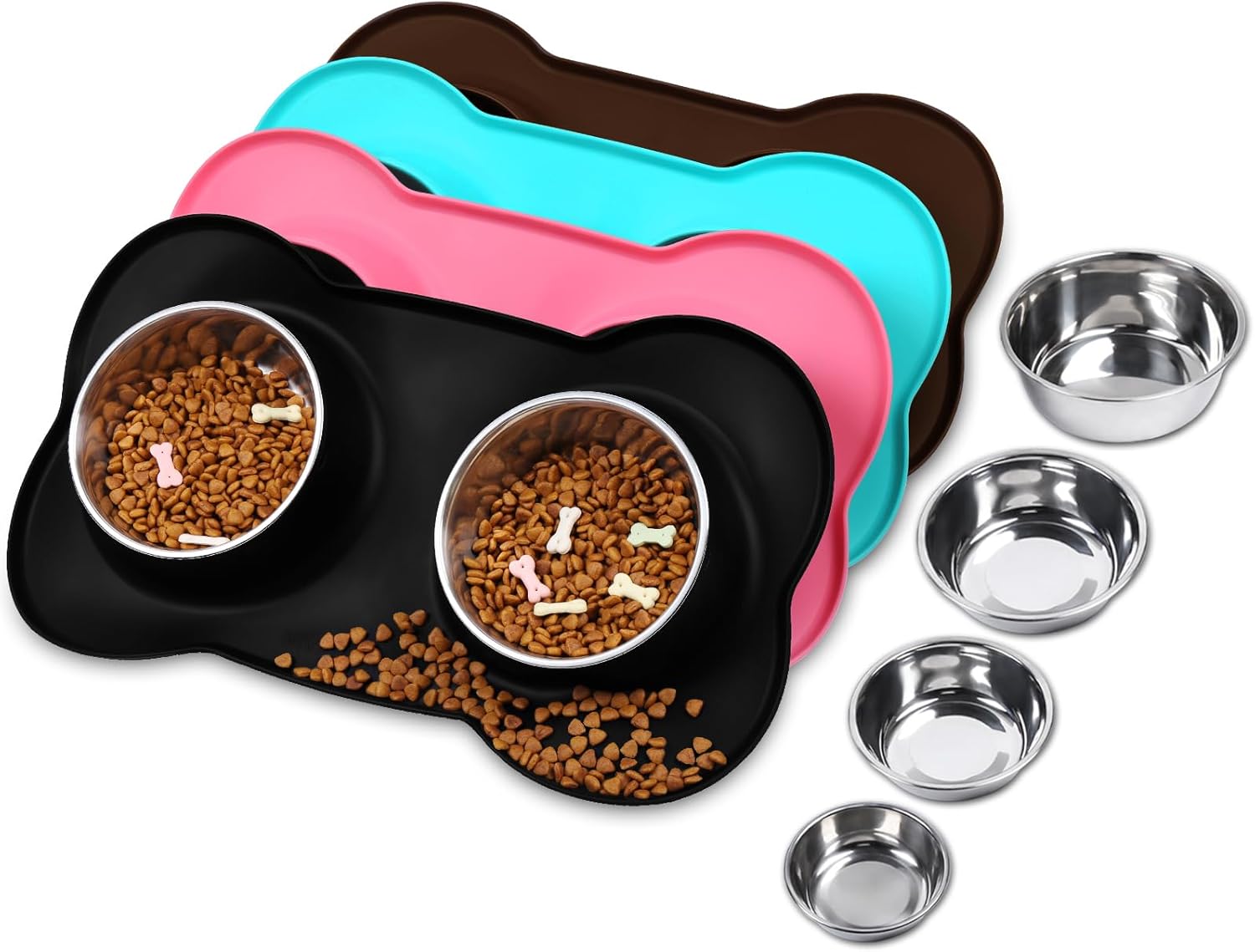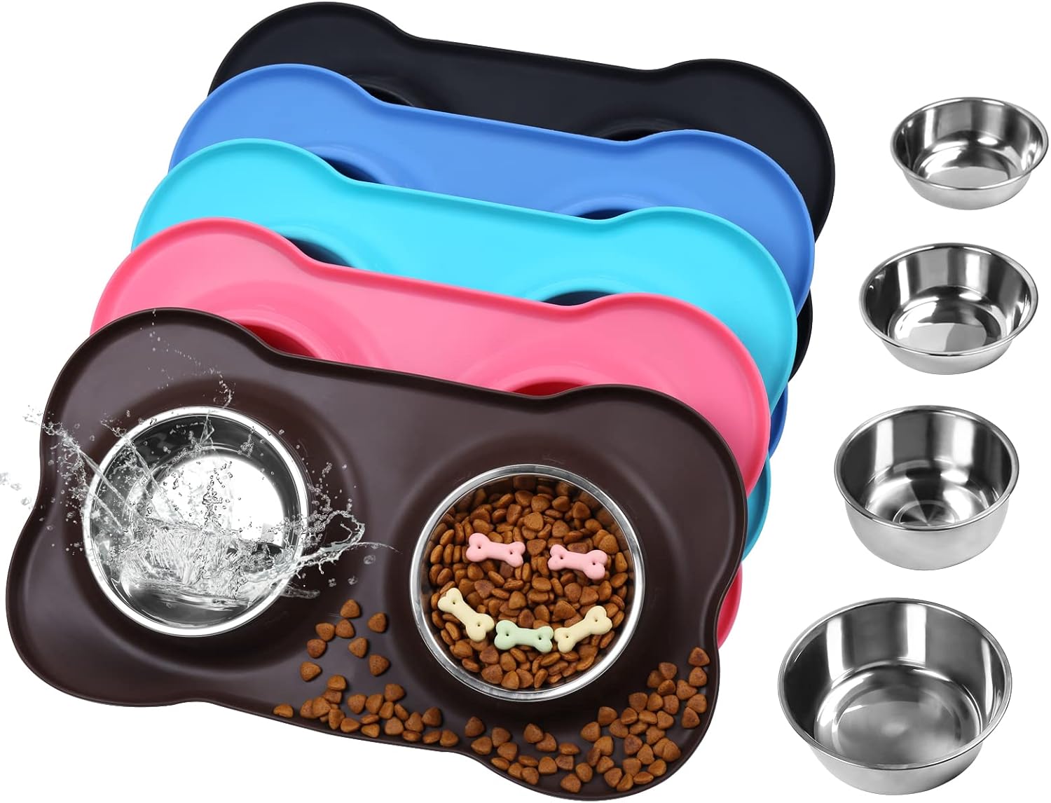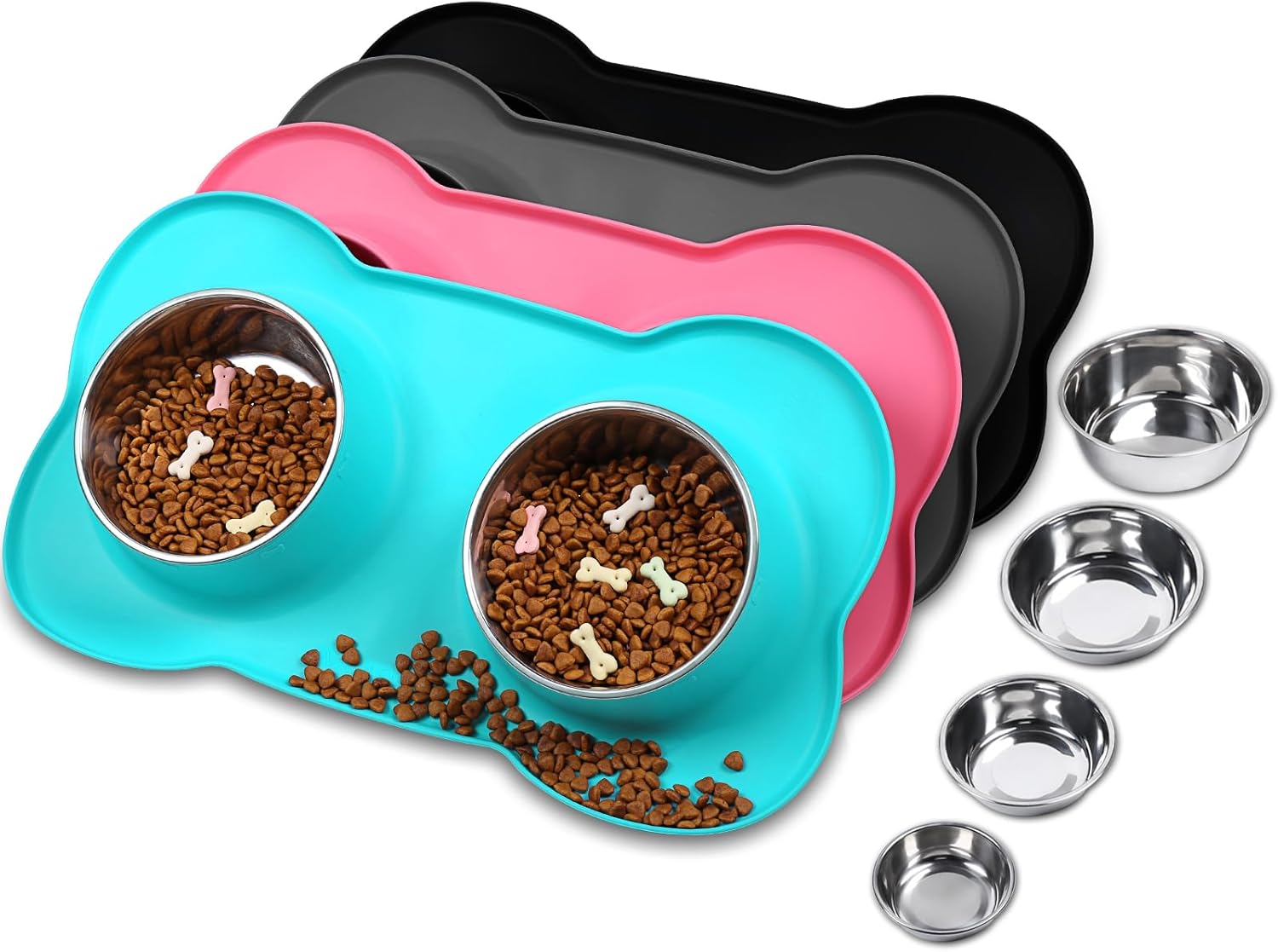 - 4 Sizes: 6½ fl OZ(185 ML) for each bowl and one mat designed for extra small, toy breeds and cats; 12½ fl OZ(355 ML) for each bowl and one mat designed for cat puppy or small dog; 28½ fl OZ(825 ML) for each bowl and one mat designed for medium sized dog or cat; 44.7 fl OZ(1270 ML) for each bowl and one mat designed for large size dogs