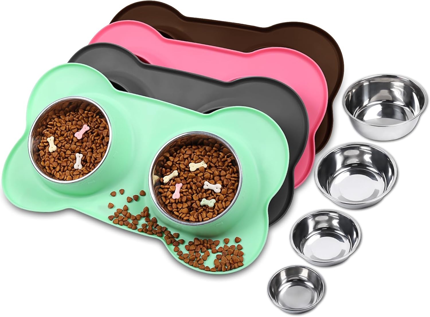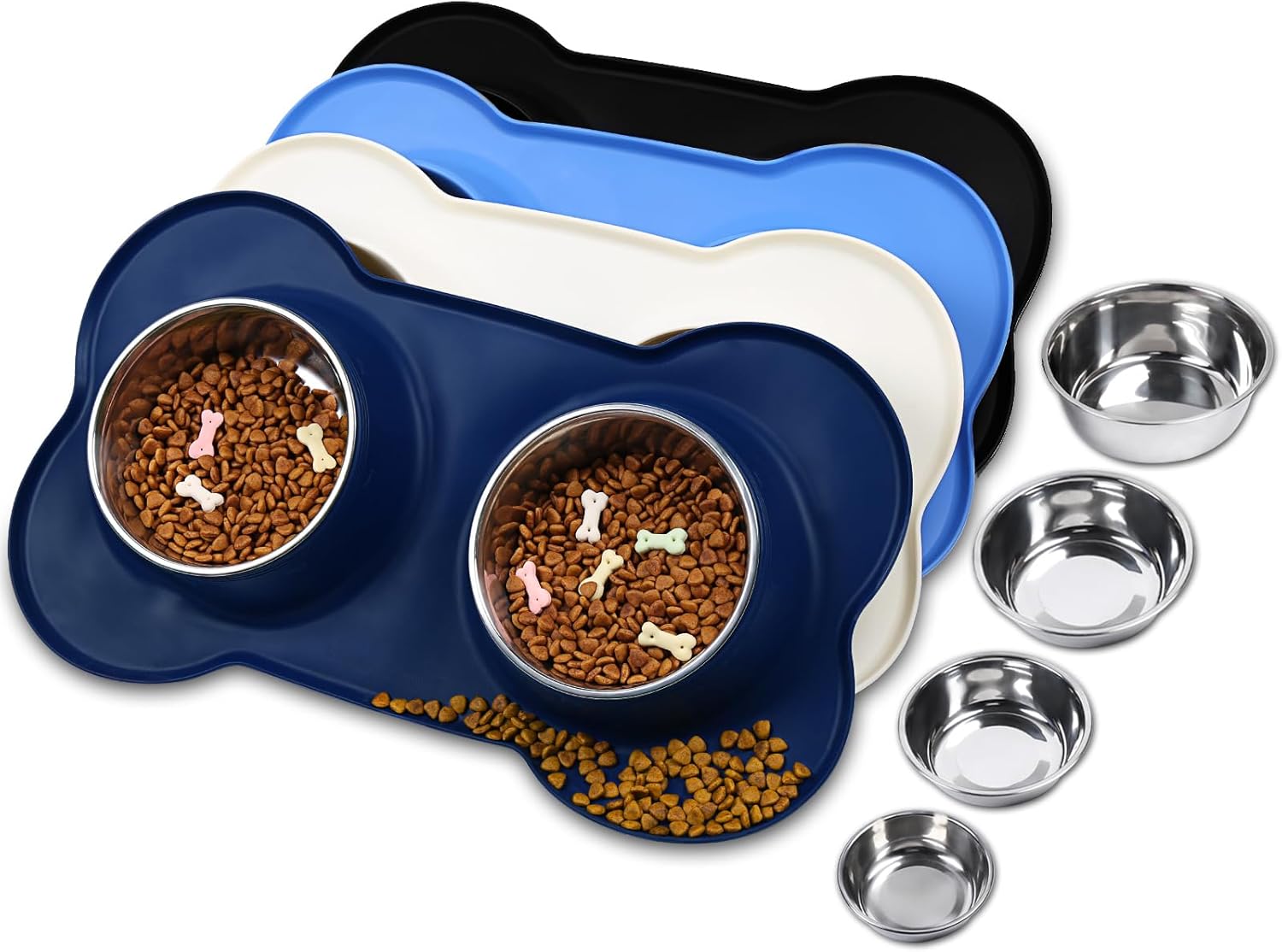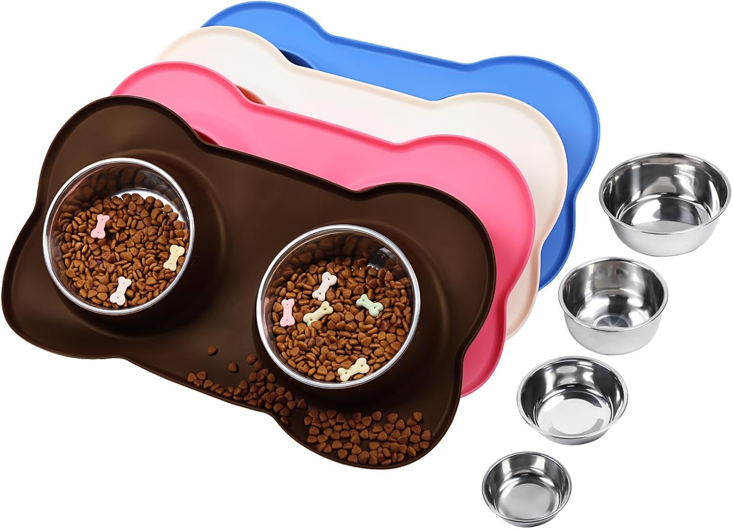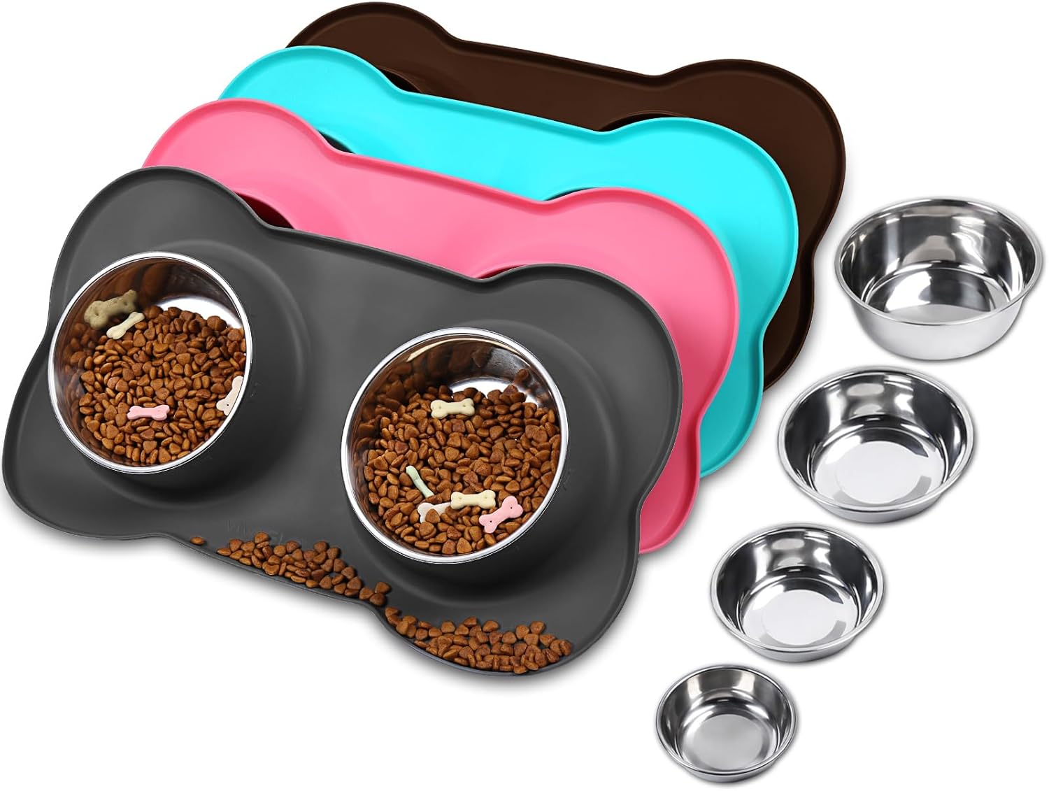 - 4 Sizes: 6½ fl OZ(185 ML) for each bowl and one mat designed for extra small, toy breeds and cats; 12½ fl OZ(355 ML) for each bowl and one mat designed for cat puppy or small dog; 28½ fl OZ(825 ML) for each bowl and one mat designed for medium sized dog or cat; 44.7 fl OZ(1270 ML) for each bowl and one mat designed for large size dogs