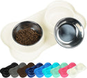 - 1 Serve 2: set of 2 stainless steel dog bowls, simple and convenient—double bowls design feeder is a convenient serving dish, allows you to serve food and water in at the same time