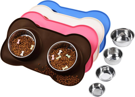 - Easy to Clean and Store: double dishes and mat are easy to separate for cleaning and all dishwasher safe, which means it's quick and easy to keep everything clean and hygienic; flexible silicone mat is foldable for travel and storage