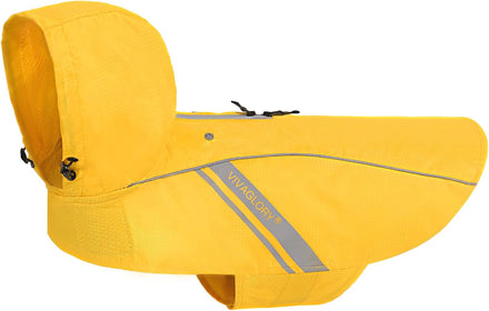 VIVAGLORY Dog Raincoat for Large Dogs, Easy on & Off Pet Rain Clothes, Reflective Lightweight Breathable Dogs Safety Vest Jackets for Adventures, Walking, Hunting, Bright Yellow