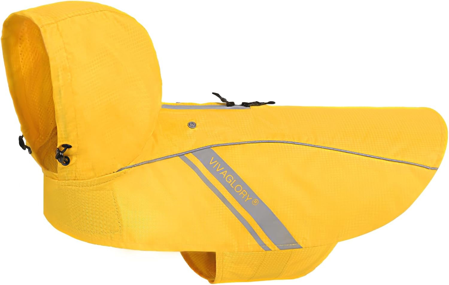 VIVAGLORY Dog Raincoat for Medium Dogs, Easy on & Off Pet Rain Clothes, Reflective Lightweight Breathable Dogs Safety Vest Jackets for Adventures, Walking, Hunting, Bright Yellow