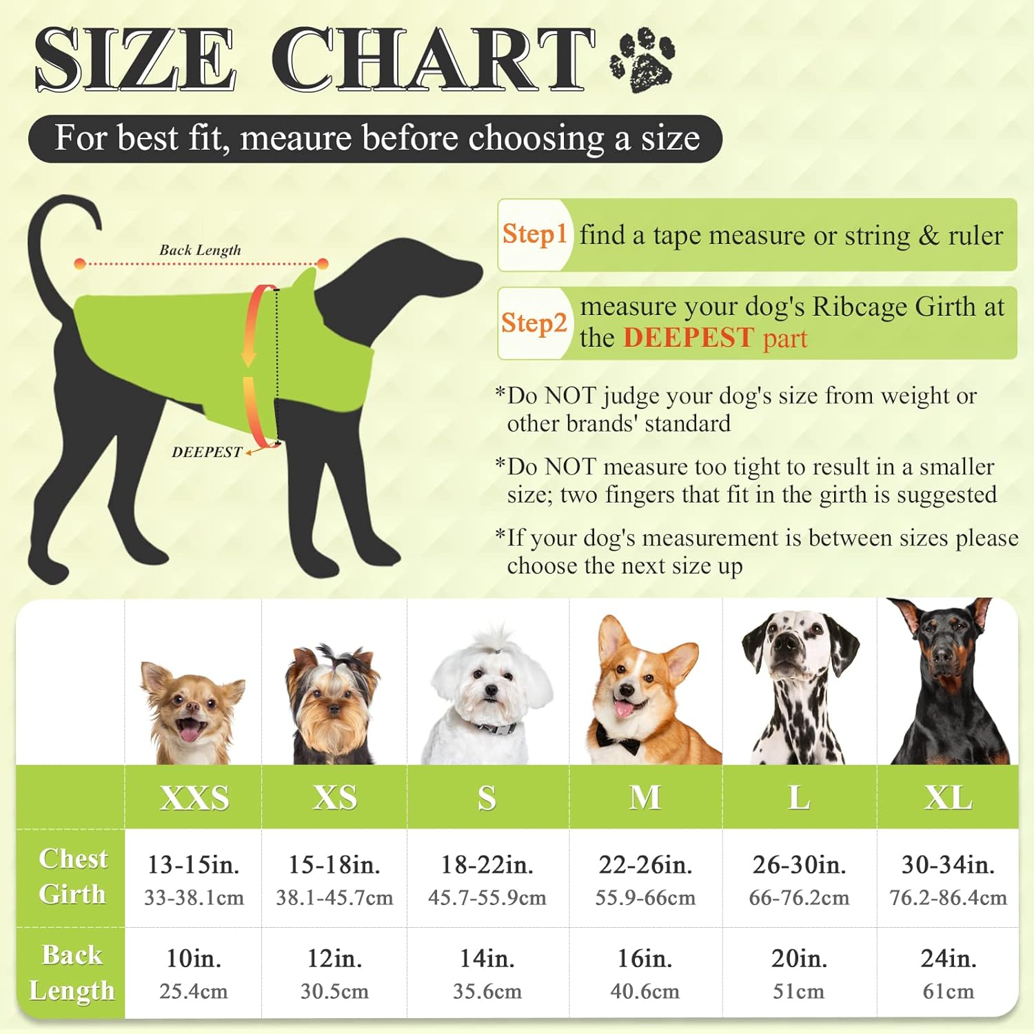 【CONVENIENT】Adjustable belly strap allows for a snug fit on most dogs, easy on & off, just secure the magic sticks around neck and belly part. Easy to clean, handwash or machine wash is available. It' easy on and off when you back from trips to the park, beach, or hiking trails and camping. No more worries about it.