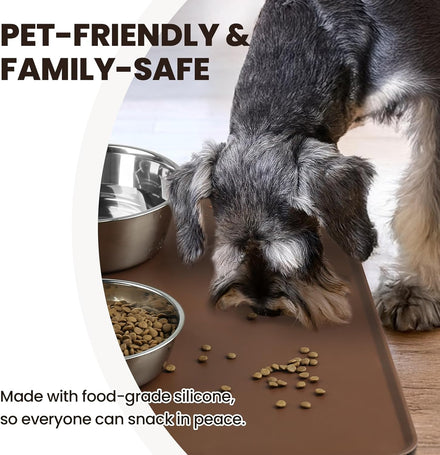 - Safe for Pets: Made from food-grade silicone, this non-toxic dog food mat is naturally safe for pets. Even if food or water spills, your pet can eat directly from it, ensuring a cleaner, more hygienic mealtime. It's safe for both pets and families, and also eco-friendly, making it a great choice for households. Suitable for all types of pet feeders, including cat and dog bowls, stainless steel and plastic bowls, plates, stands, and drinking fountains, helping to keep mealtimes tidy and hygienic