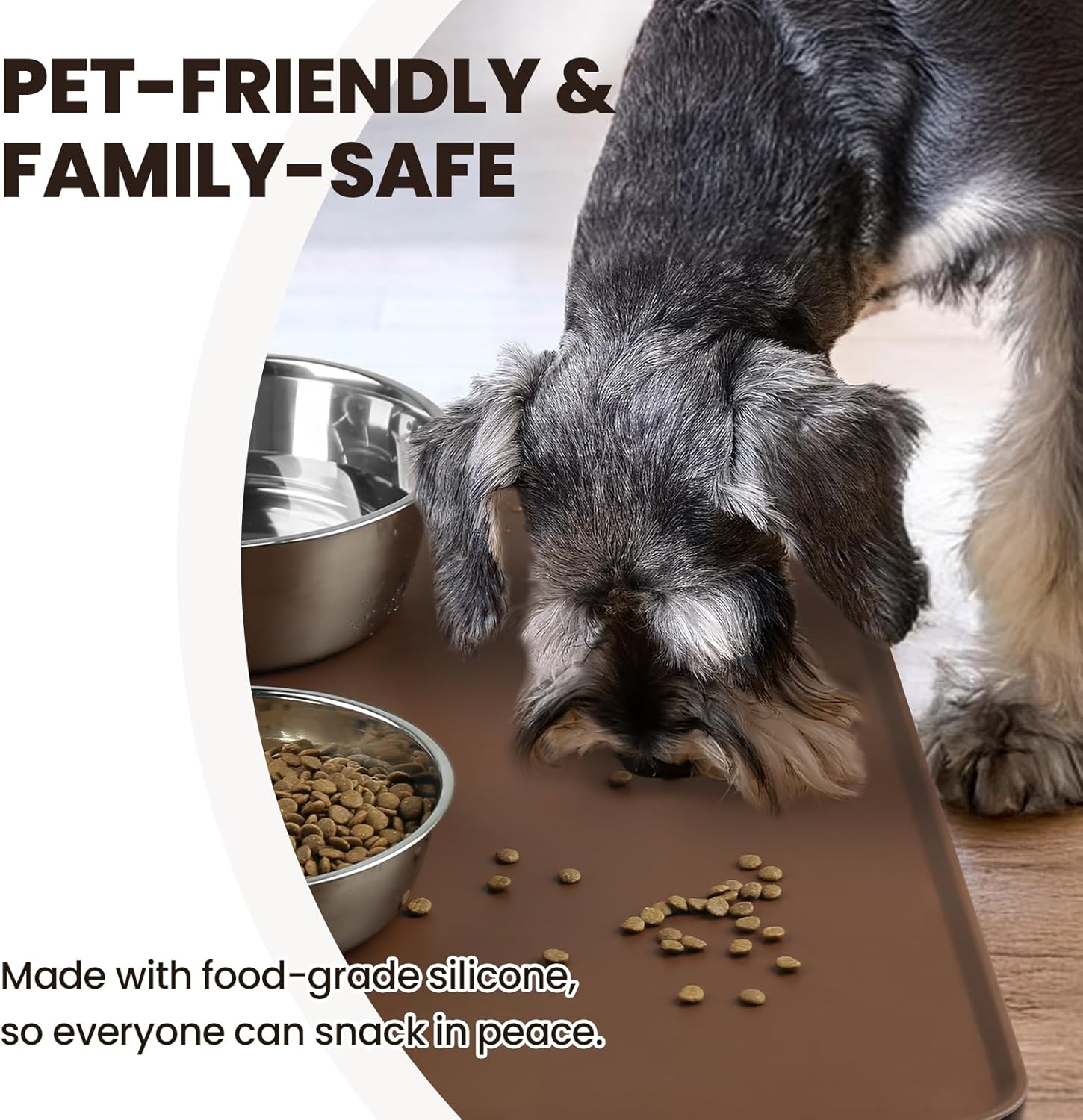 - Safe for Pets: Made from food-grade silicone, this non-toxic dog food mat is naturally safe for pets. Even if food or water spills, your pet can eat directly from it, ensuring a cleaner, more hygienic mealtime. It's safe for both pets and families, and also eco-friendly, making it a great choice for households. Suitable for all types of pet feeders, including cat and dog bowls, stainless steel and plastic bowls, plates, stands, and drinking fountains, helping to keep mealtimes tidy and hygienic