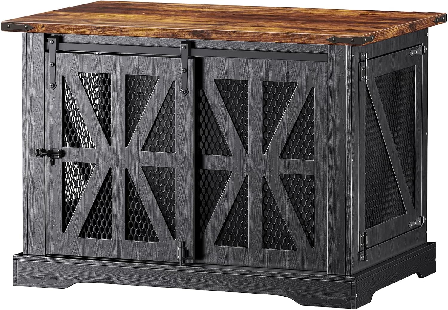 With dual doors and versatile placement options, the dog kennel indoor allows easy access while doubling as an end table. The rustic wood grain and black finishing give it a classic farmhouse aesthetic that will complement your living room or bedroom.
