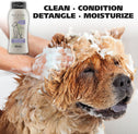 - Calming Formula – This lavender scented pet shampoo is great for cleaning dirty coats, coat conditioning & detangling, & skin moisturizing short to long coats. The thick lather rinses off clean & keeps your pet looking and smelling clean