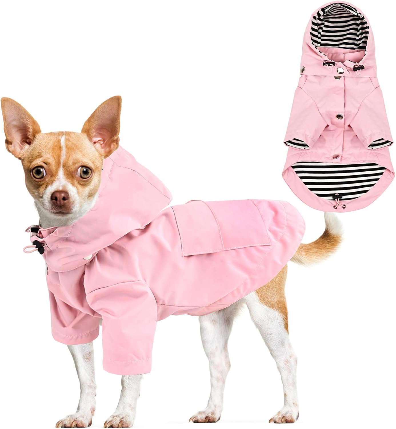 Our dog raincoat is made from high-quality waterproof material, ensuring that your dog stays dry even in heavy rain. The adjustable design allows for a perfect fit, catering to dogs of various sizes. The lightweight construction of the raincoat ensures that it doesn't weigh your dog down, providing freedom of movement.