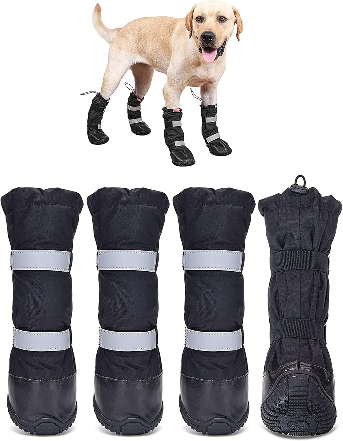 Waterproof Dog Shoes for Medium Large Dogs, Durable Nonslip Rubber Sole Paw Protectors for Winter Snow Rain Hiking, Dog Rain Boots with Reflective Straps, Dog Booties for Outdoor Walking