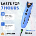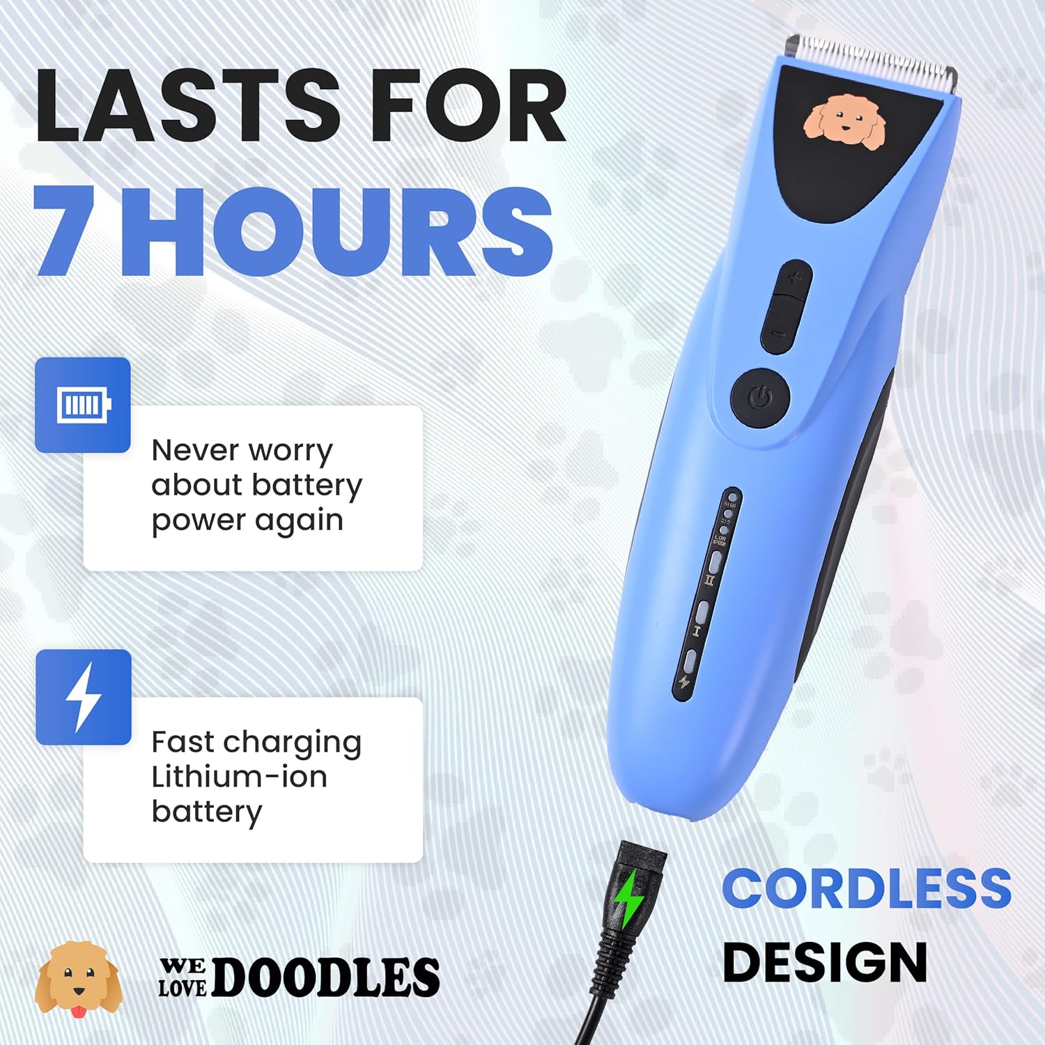 - CORDLESS AND LONG-LASTING: Enjoy up to 6 hours of uninterrupted grooming with our powerful, rechargeable cordless dog clippers, perfect for extended grooming sessions.