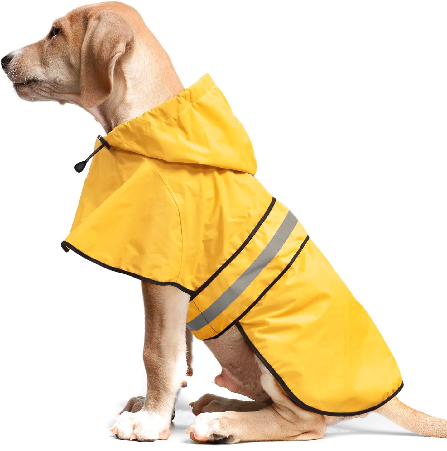 Weesiber Dog Raincoat, Adjustable Waterproof Dog Rain Jacket Poncho with Reflective Strip and Leash Hole, Lightweight Pet Rain Coat for Small to X-Large Doggos (XL, Yellow)