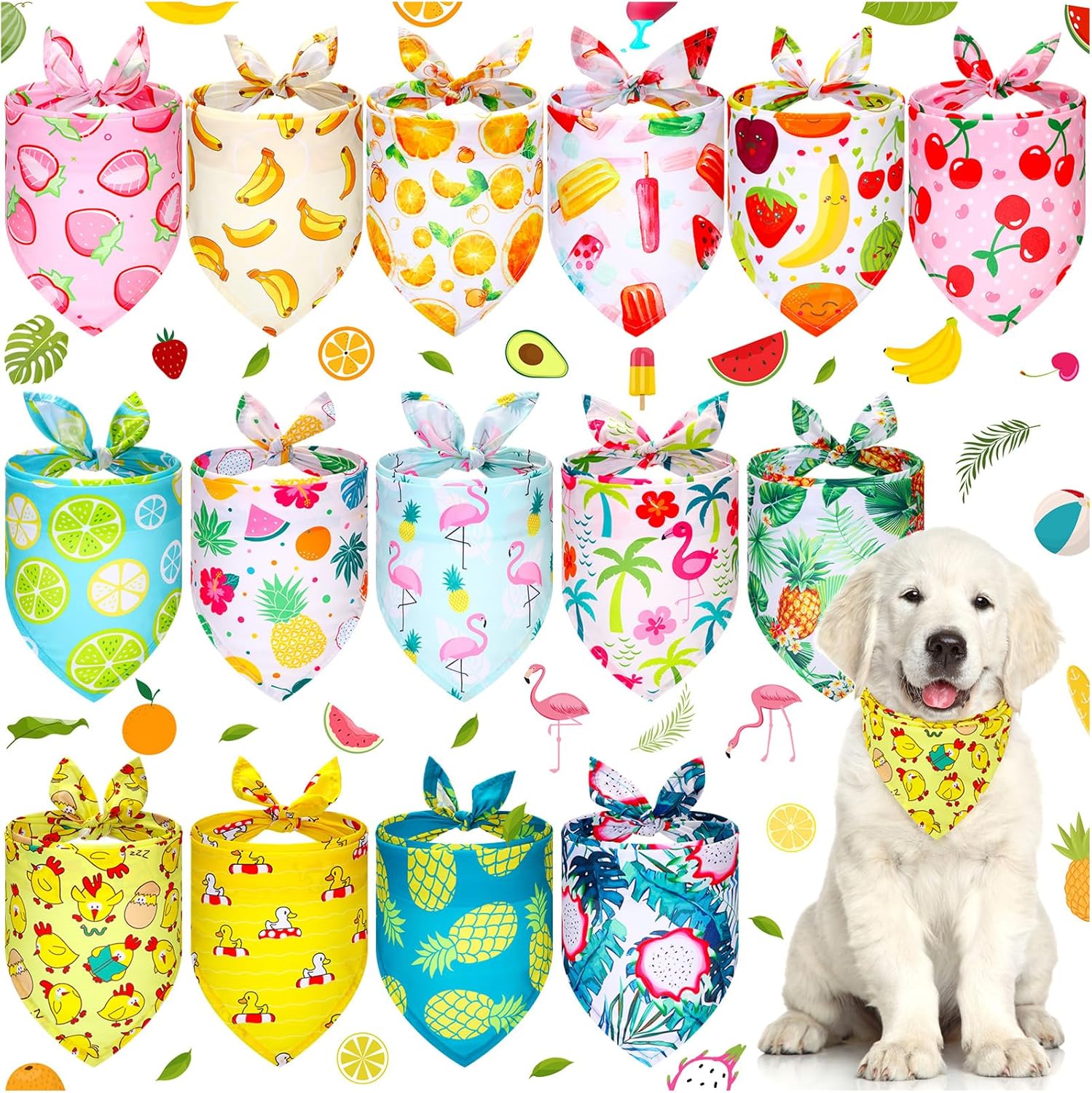 - Summer Elements: there are 15 different kinds of mixed summer fruit, Hawaiian plant, flamingo and other cooling patterns; The pet triangle bib is a good gift for your pet to enjoy the lifestyle leisurely