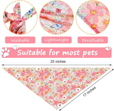 - Adjustable size: the floral dog bandana measures approx. 17 x 17 x 25 inch, which is suitable for most medium and large dogs, and the dog bandana is designed in triangle shape which can be folded over to fit small dogs and cats