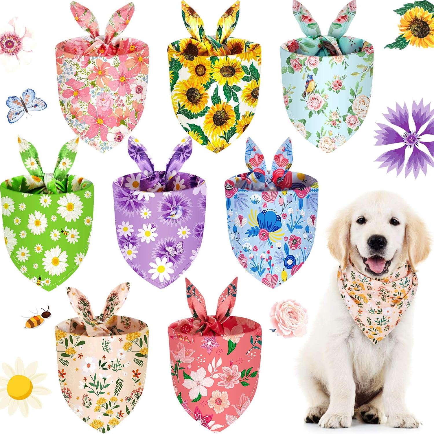- You will receive: there are 8 pieces floral dog bandanas in different colors and patterns, sufficient amount and various colors can satisfy your pets' daily use and replacement, also you can give some of floral dog bandanas to your friends who keep pets