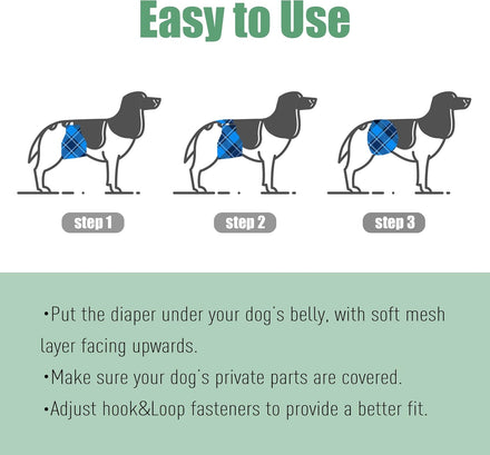 Wegreeco washable male dog wraps are designed to keep off accidents from turning into messes. Whether your pet isn't fully house-trained yet, an elderly dog with age-related incontinence or leakage problems from any other cause, our washable doggie diapers male will keep you, and your pet happy.