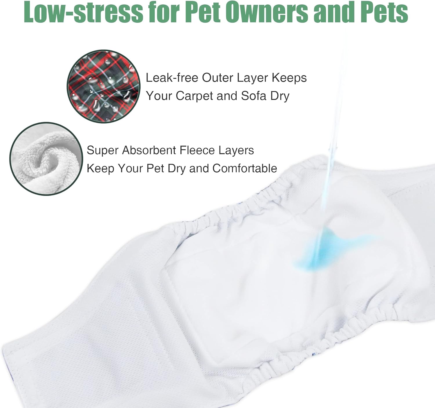 The double layers long-lasting fiber help make it much easier to absorb urine, specifically ideal for male dogs with urinary incontinence, excitable urination, and marking issues.