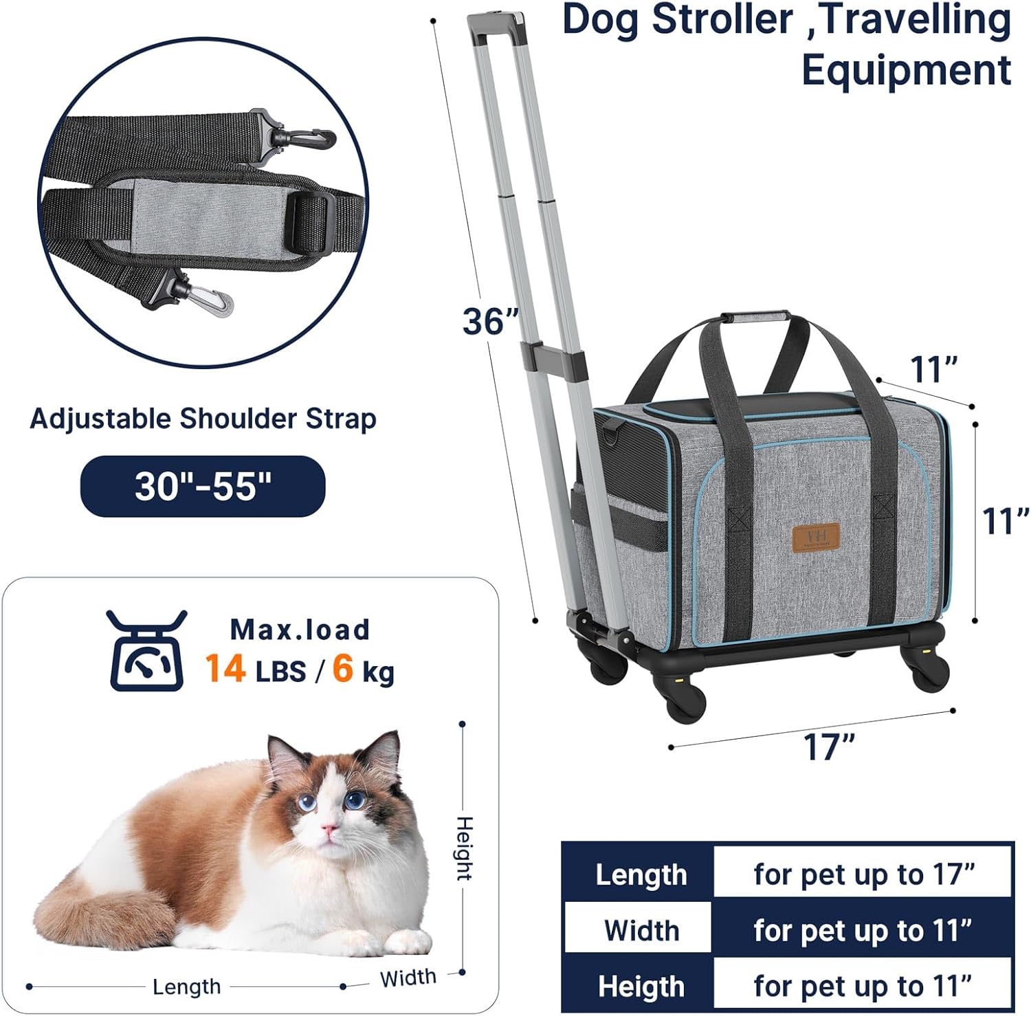 - Versatile Travel Solutions: Western Home Cat Dog Carrier with Wheels is designed for multiple travel scenarios, including air travel, car trips, camping, and daily use. Easily switch from pulling by hand to securing in your car or carrying on your back for ultimate convenience.