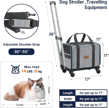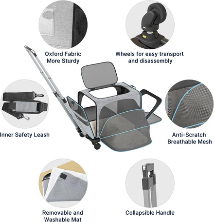 - Easy Transformability: The rolling crate can be easily detached from the chassis, transforming into a standalone dog carrying bag. Ideal for both spontaneous adventures and structured travel, this pet stroller accommodates dogs, small dogs, kittens, and cats seamlessly.