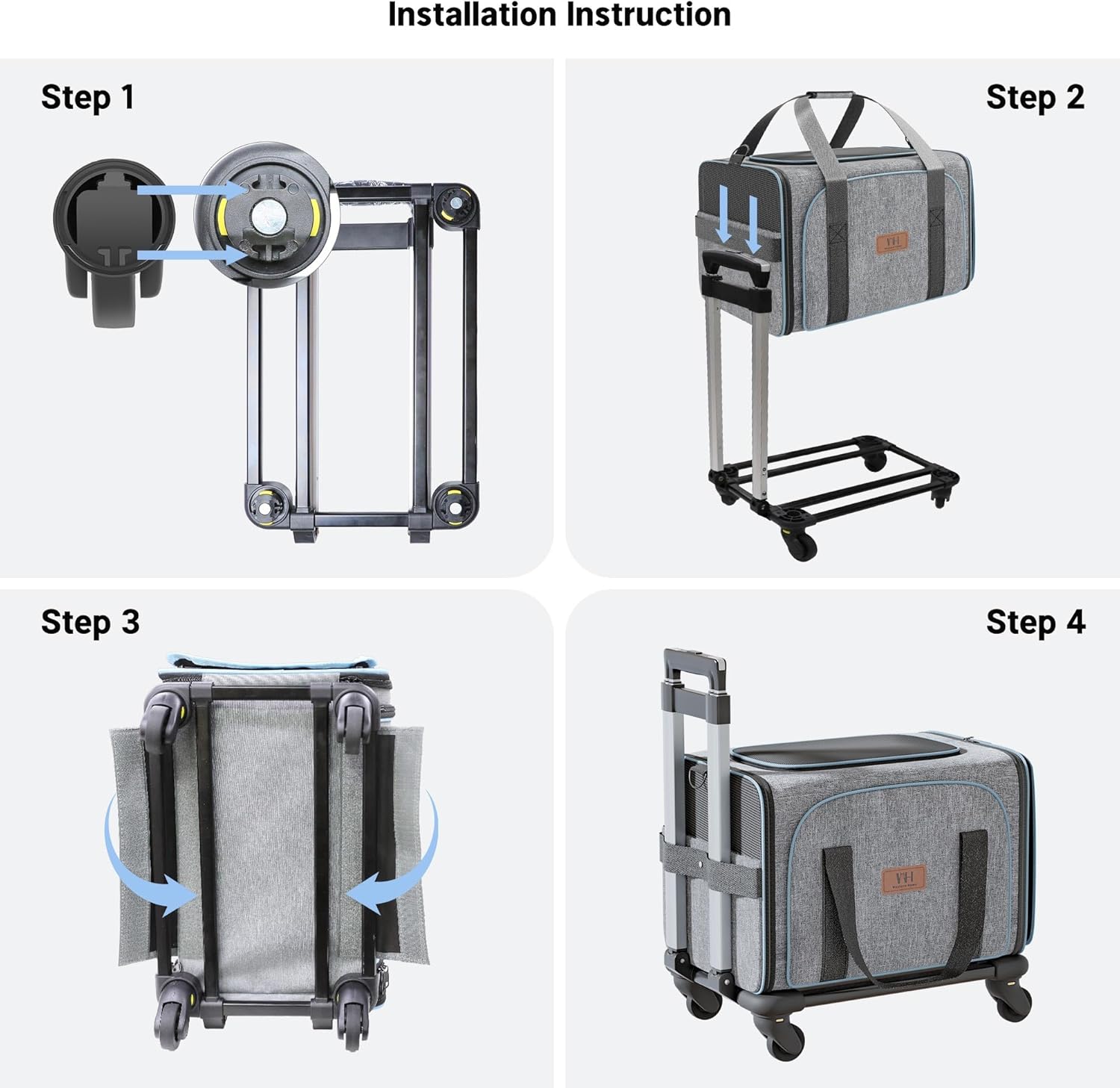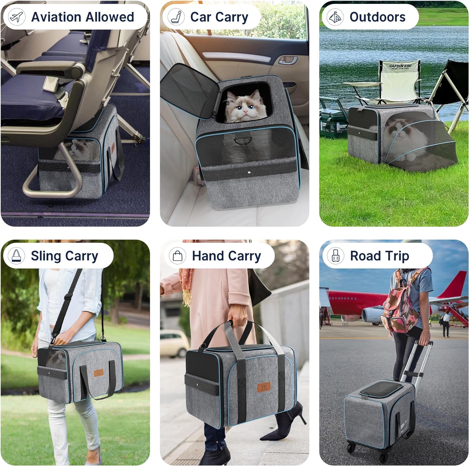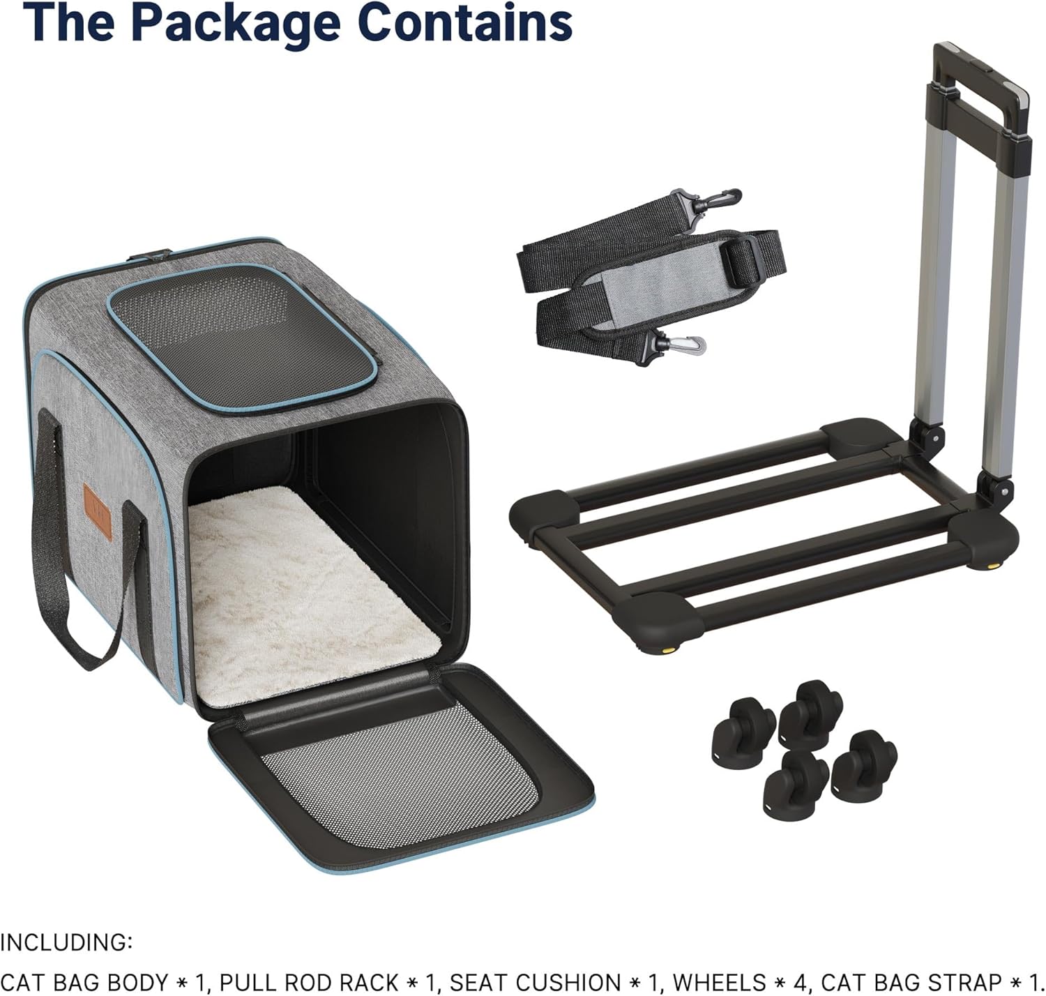 - Pet Carrier Airline Approved: The cat backpack carrier tsa approved pet carrier in cabin, allowing you to travel with peace of mind. Simply remove the wheels or base for easy placement under the cabin seat (please check your airline rules and regulations before flying).