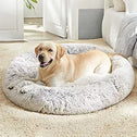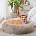 - 【COMFORTABLE SLEEP】This dog donut cuddler bed has a circular design, surrounded by bulges around the cat, which is very suitable for pets who like to curl up. The dog round bed provides a full sense of security for your pet.