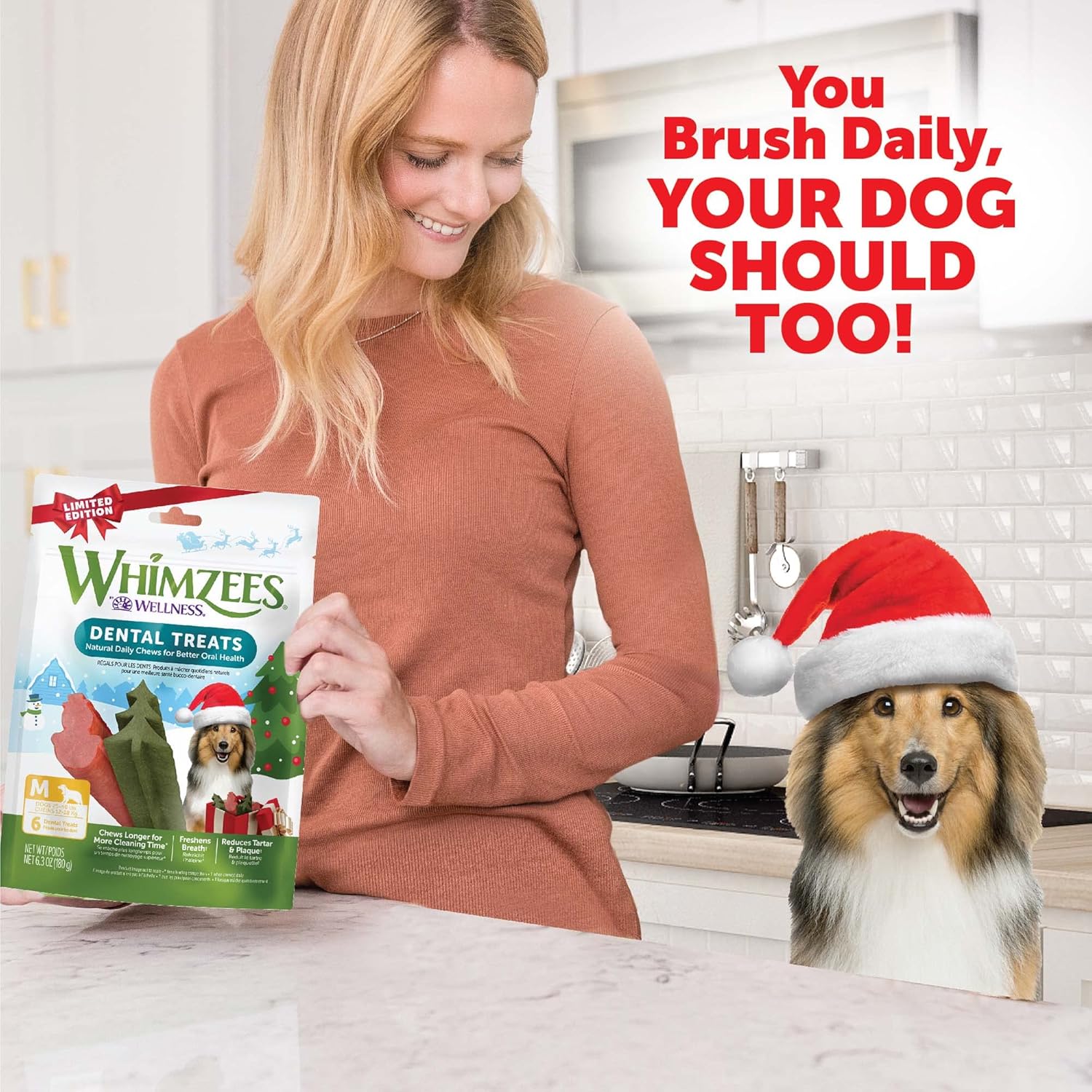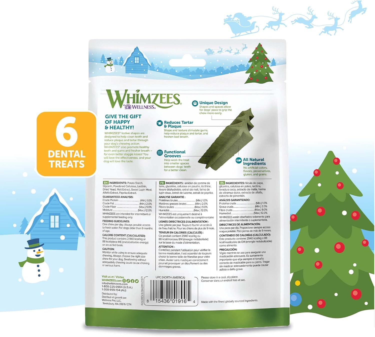 WHIMZEES Wellness Holiday Dog Dental Treats, Christmas Gift for Dogs, Size Medium Stick, (6 Count)