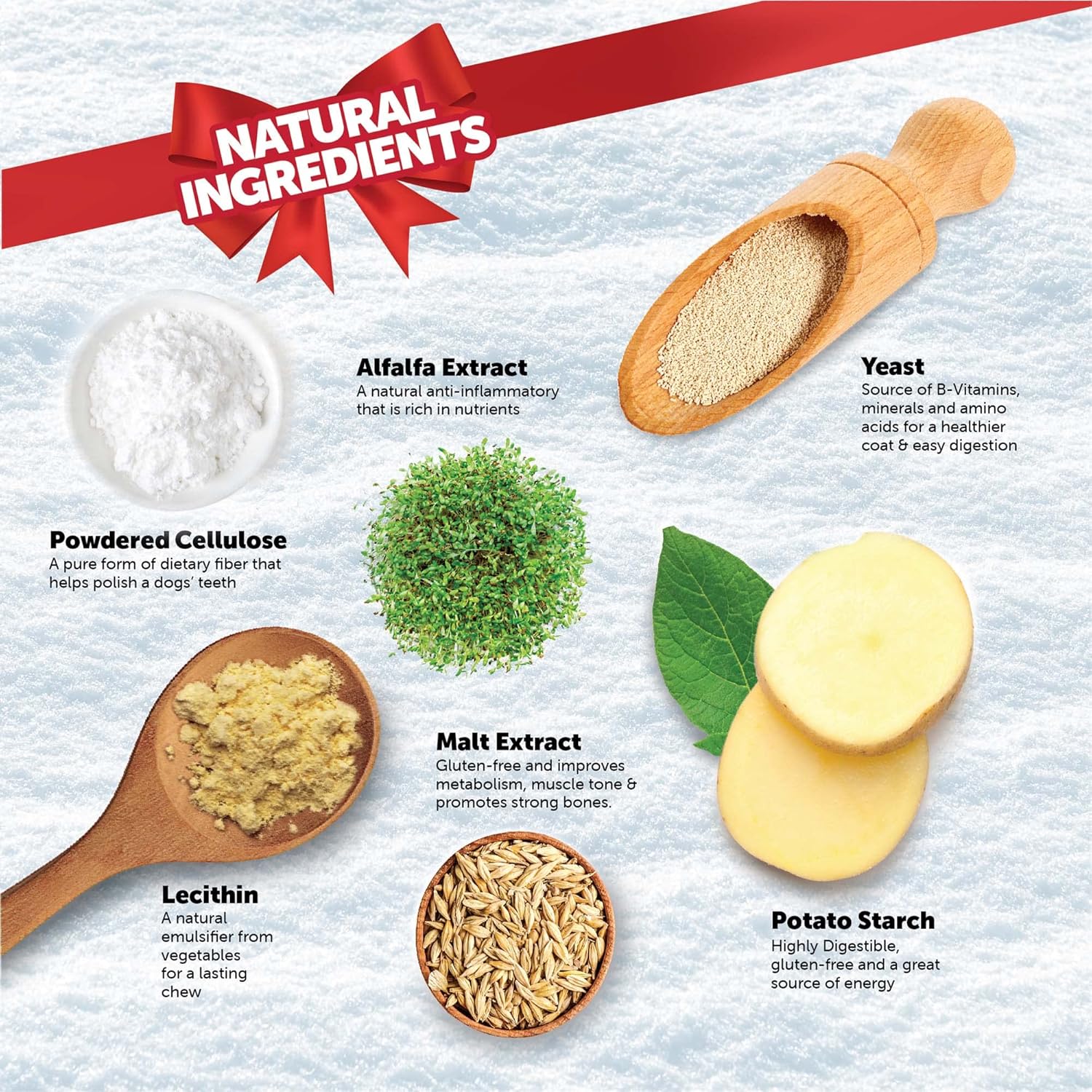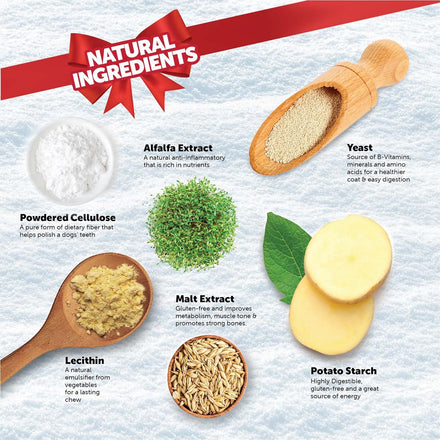 • GRAIN-FREE NATURAL TREAT: Treats crafted with no artificial colors, flavors, preservatives, gluten or meat. This edible, vegetarian chew is perfect for dogs with food allergies or sensitivities: low in fat, vitamin and antioxidant rich, with fiber to aid in good digestive health.